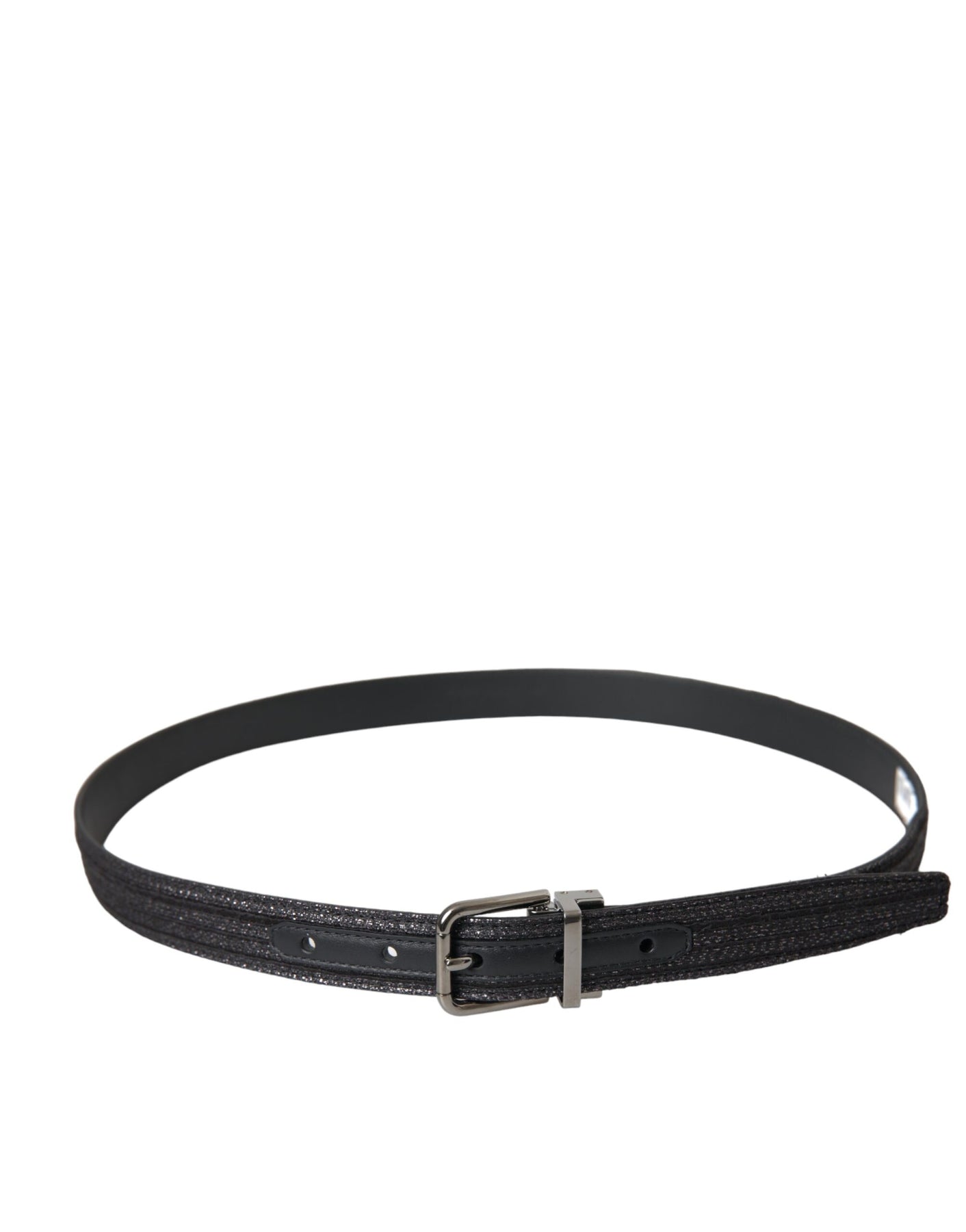 Dolce & Gabbana Black Jacquard Stripes Silver Metal Buckle Belt