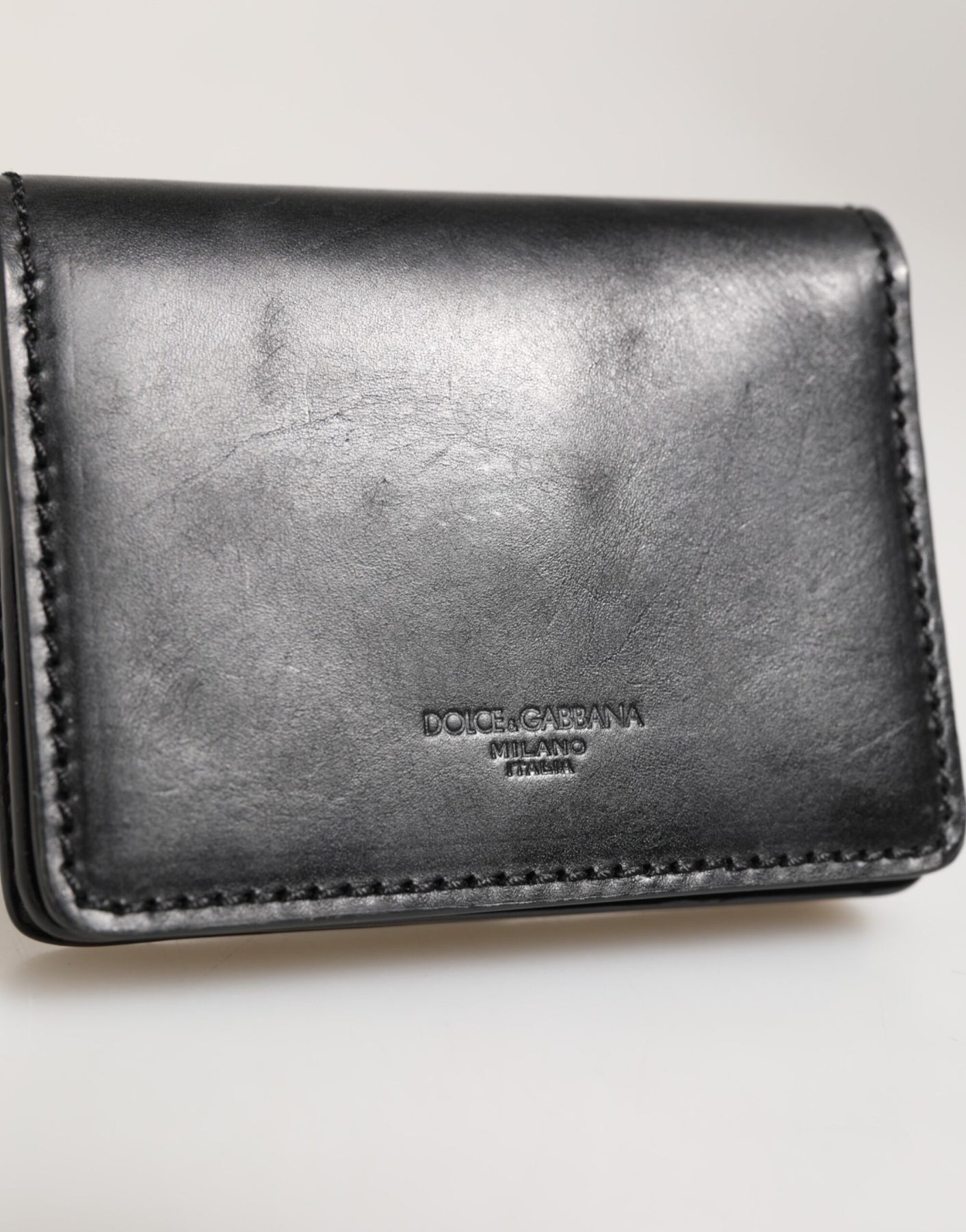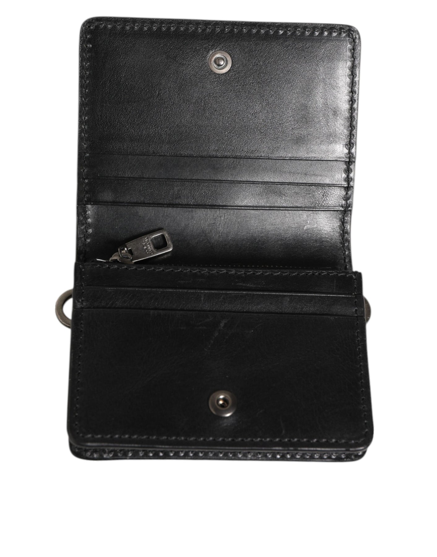 Dolce & Gabbana Black Leather Bifold Card Holder Mens Coin Purse Key Clip Wallet