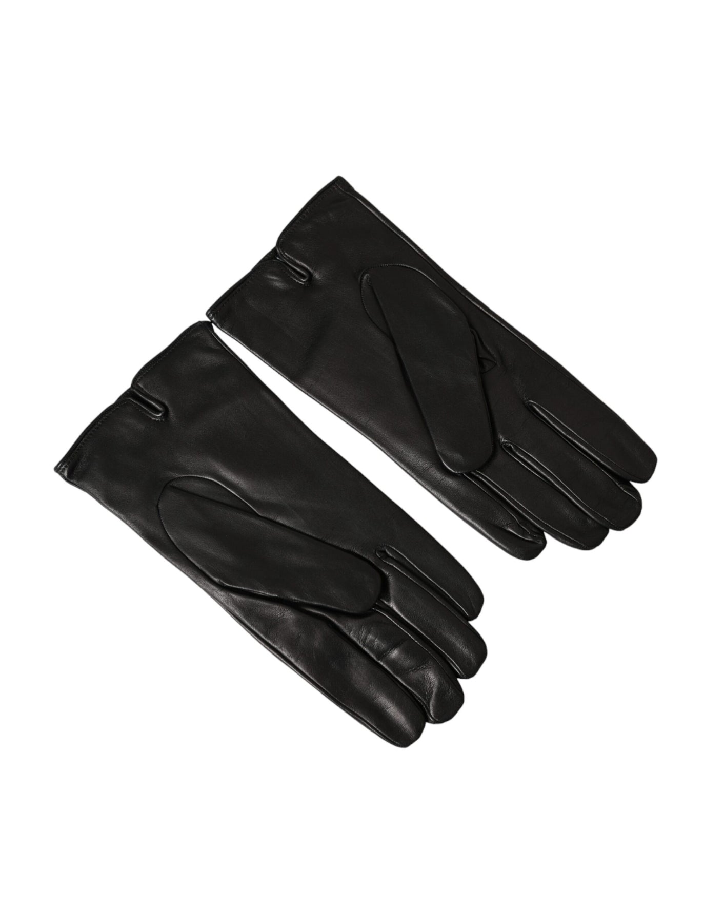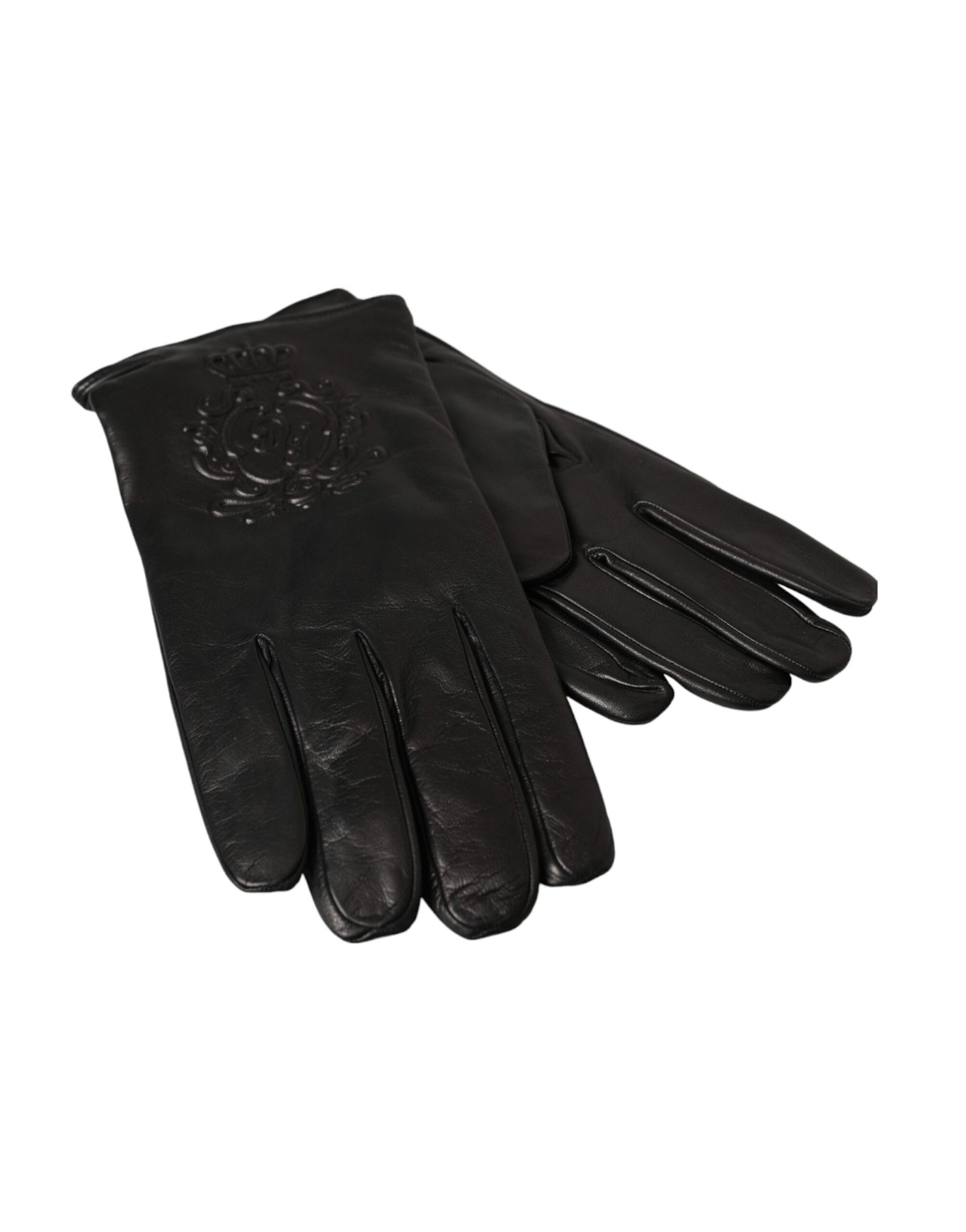 Dolce & Gabbana Black Leather Embossed Logo Short Hands Gloves