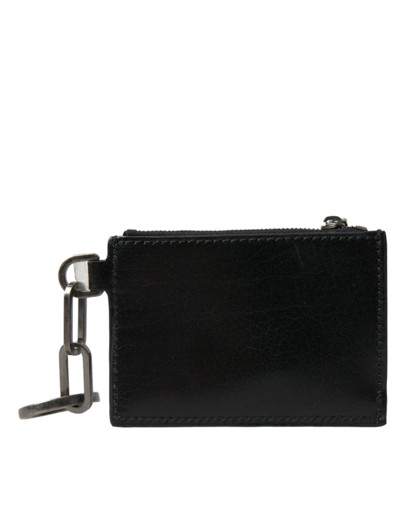 Dolce & Gabbana Black Leather Zip Logo Keyring Coin Purse Keyring Wallet