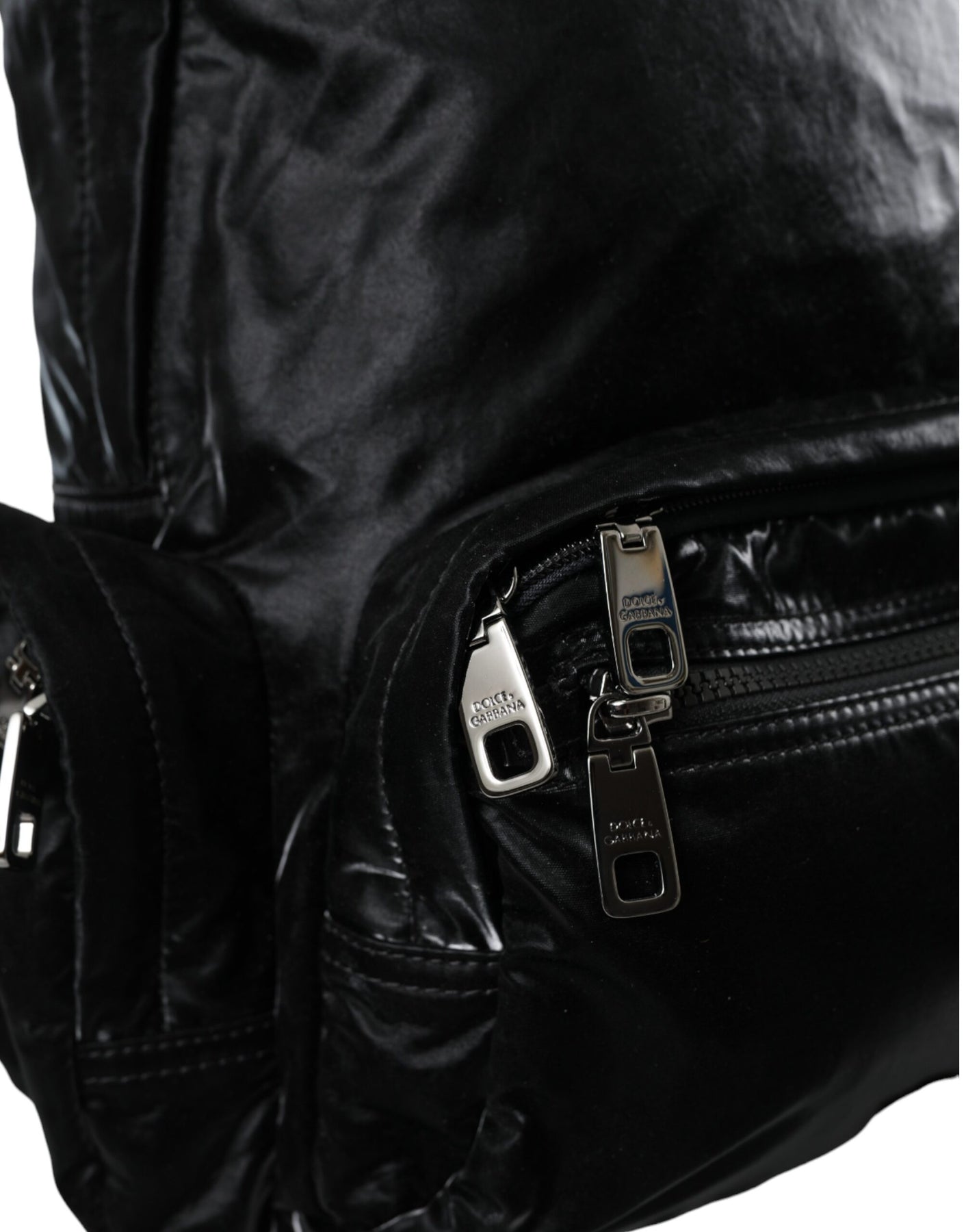 Dolce & Gabbana Black Patent Leather Logo Plaque Backpack Bag