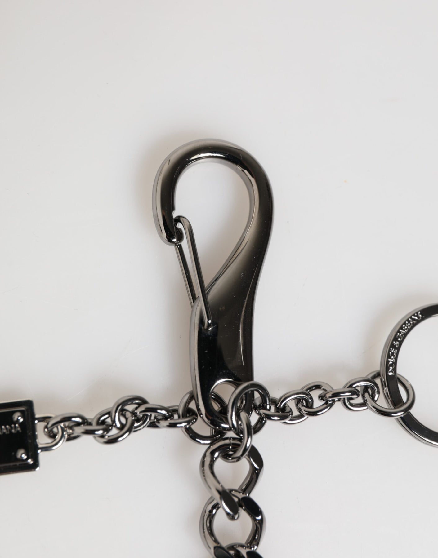 Dolce & Gabbana Black Red Military Leather Patch DG Logo Keychain Keyring
