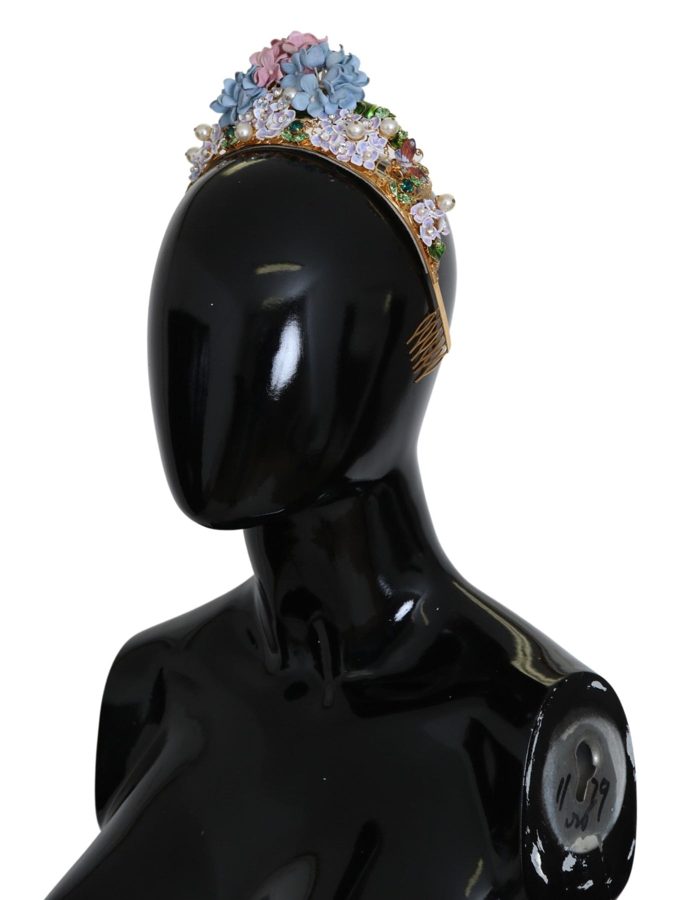 Dolce & Gabbana Gold Crystal Purple Hortensia Headband Crown Diadem