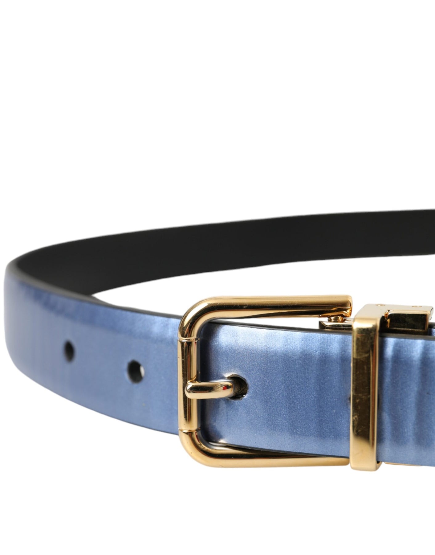 Dolce & Gabbana Metallic Blue Leather Gold Metal Buckle Belt