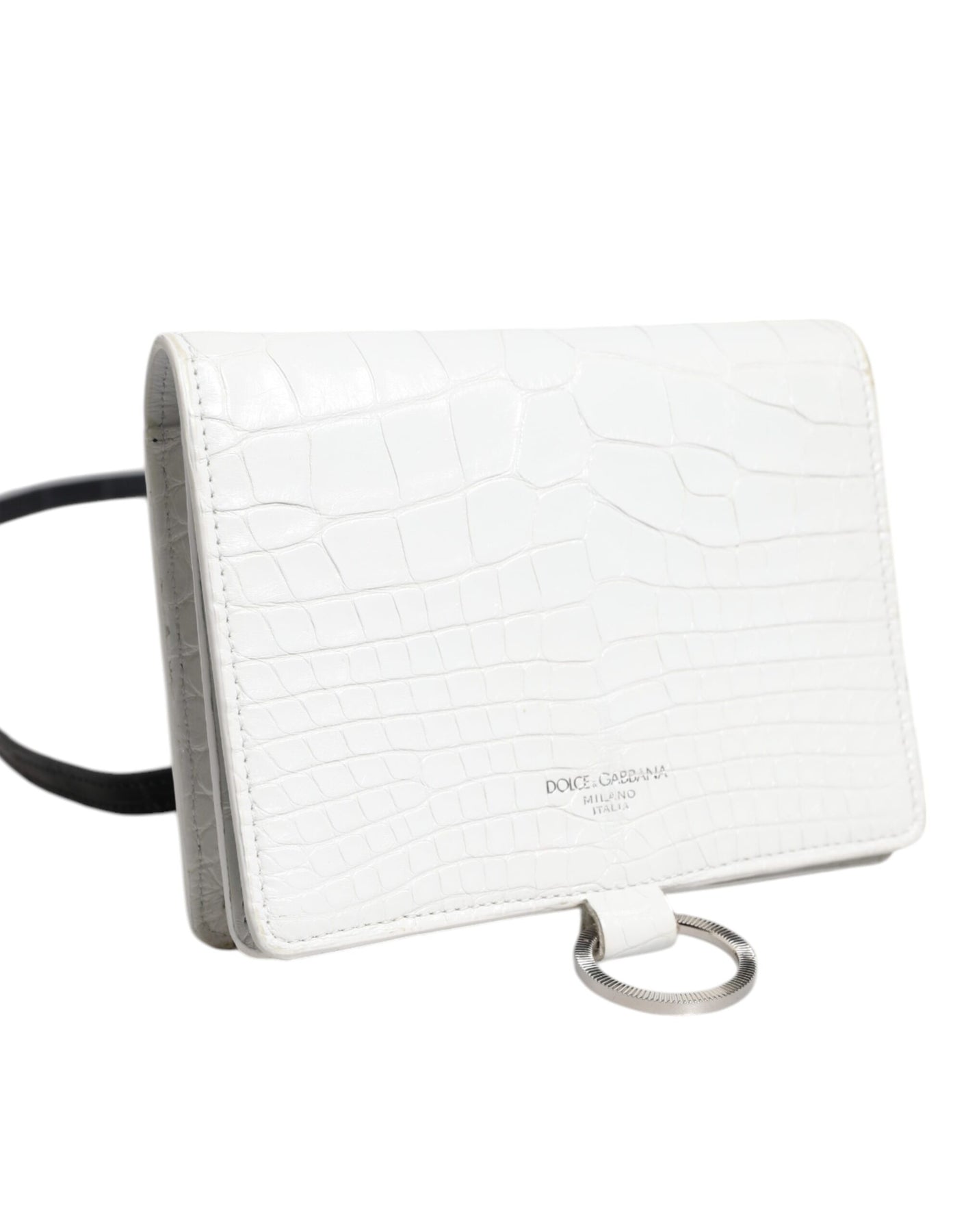 Dolce & Gabbana White Blue Leather Bifold Crossbody Sling Wallet