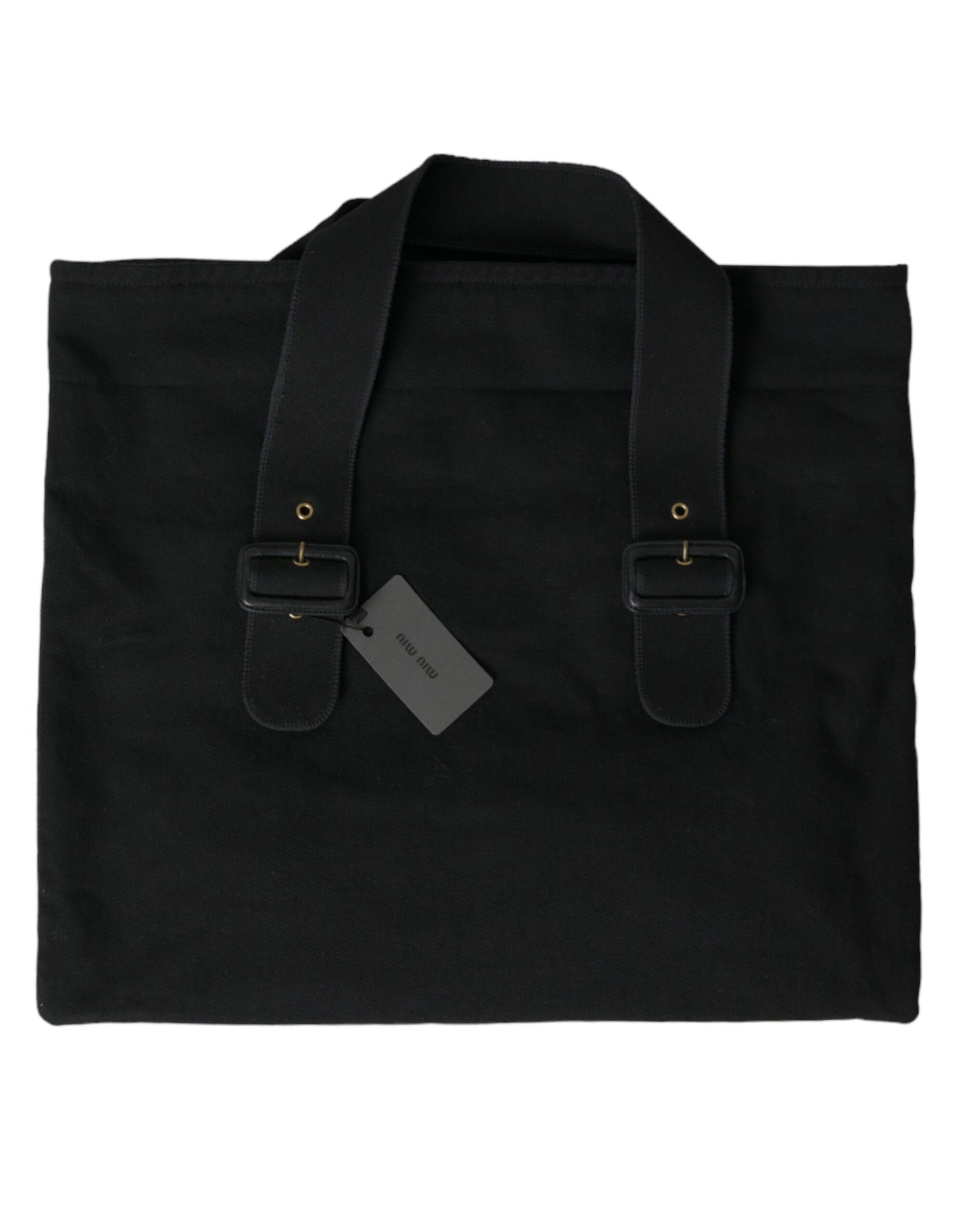 Miu Miu Black Canvas Denim Logo Shoulder Tote Shopping Bag