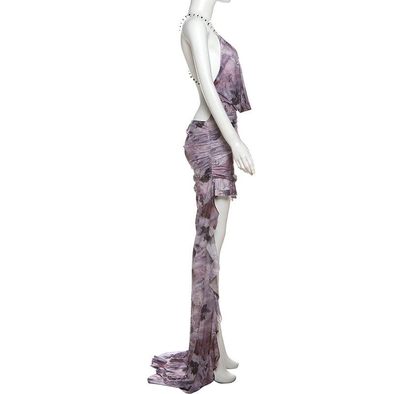 Element: Ruffle,Backless,Metal Chain,Ruched,Asymmetric