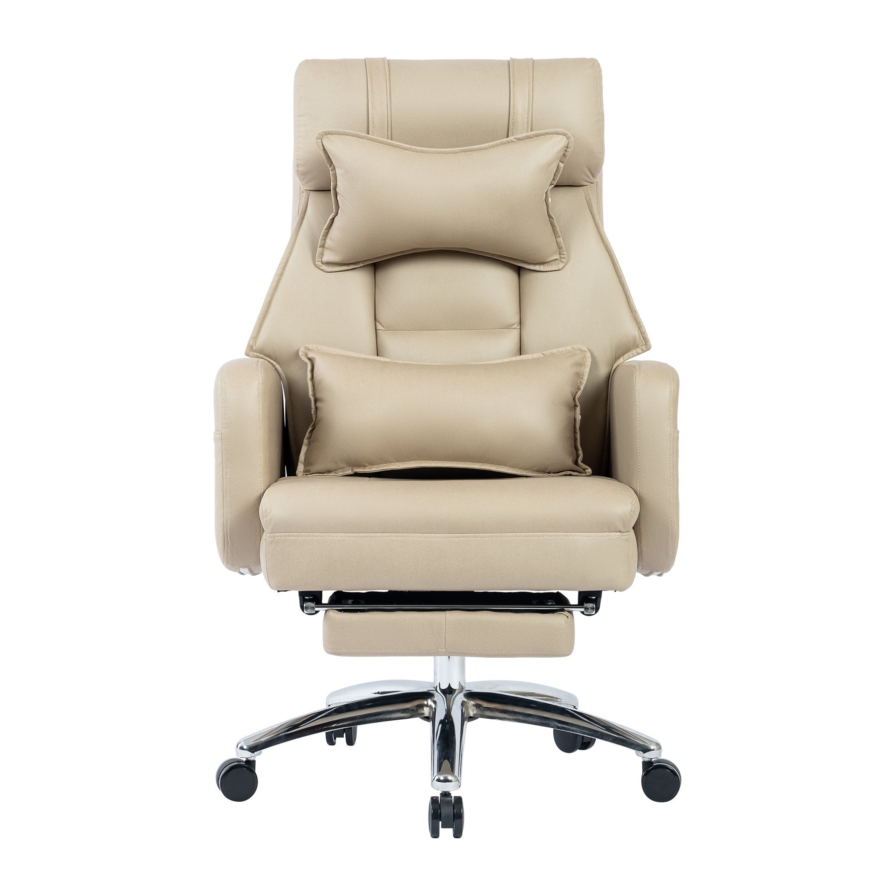 Swivel Ergonomic Office Chair, Technology Leather High Back Office Chair with Lumbar Support Headrest, Sedentary Comfortable Boss Chair, 155° Reclining Computer Chair (Color : Beige)