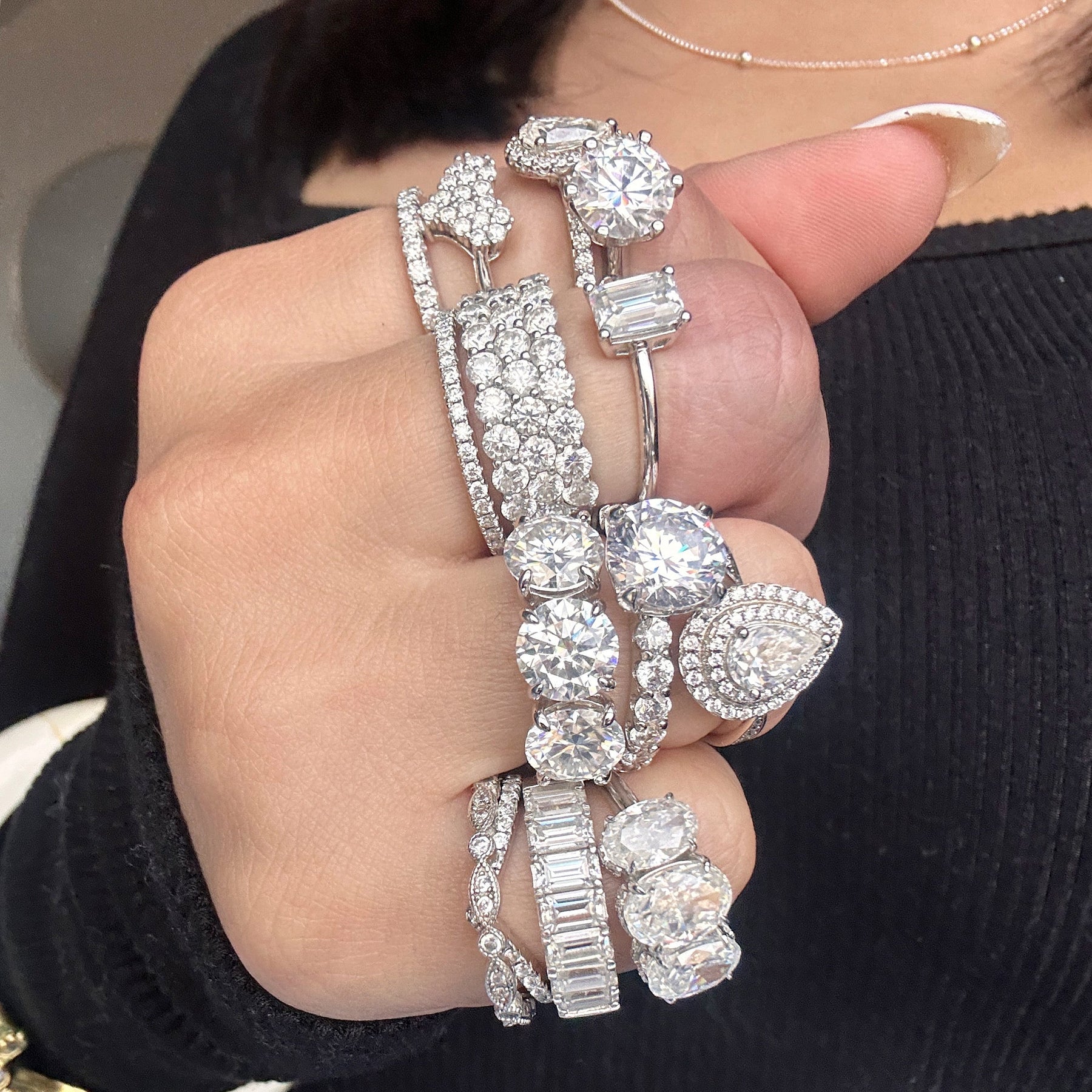 6.0ctw Three Stone Round Cut Moissanite Engagement Ring