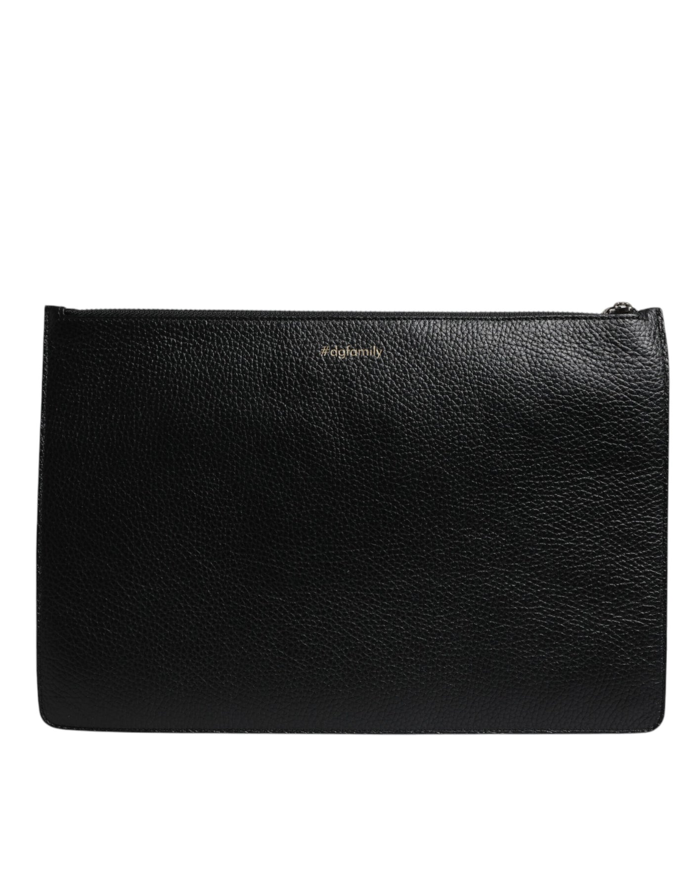Dolce & Gabbana Black Leather #DGFAMILY Embellished Men Zip Pouch Bag