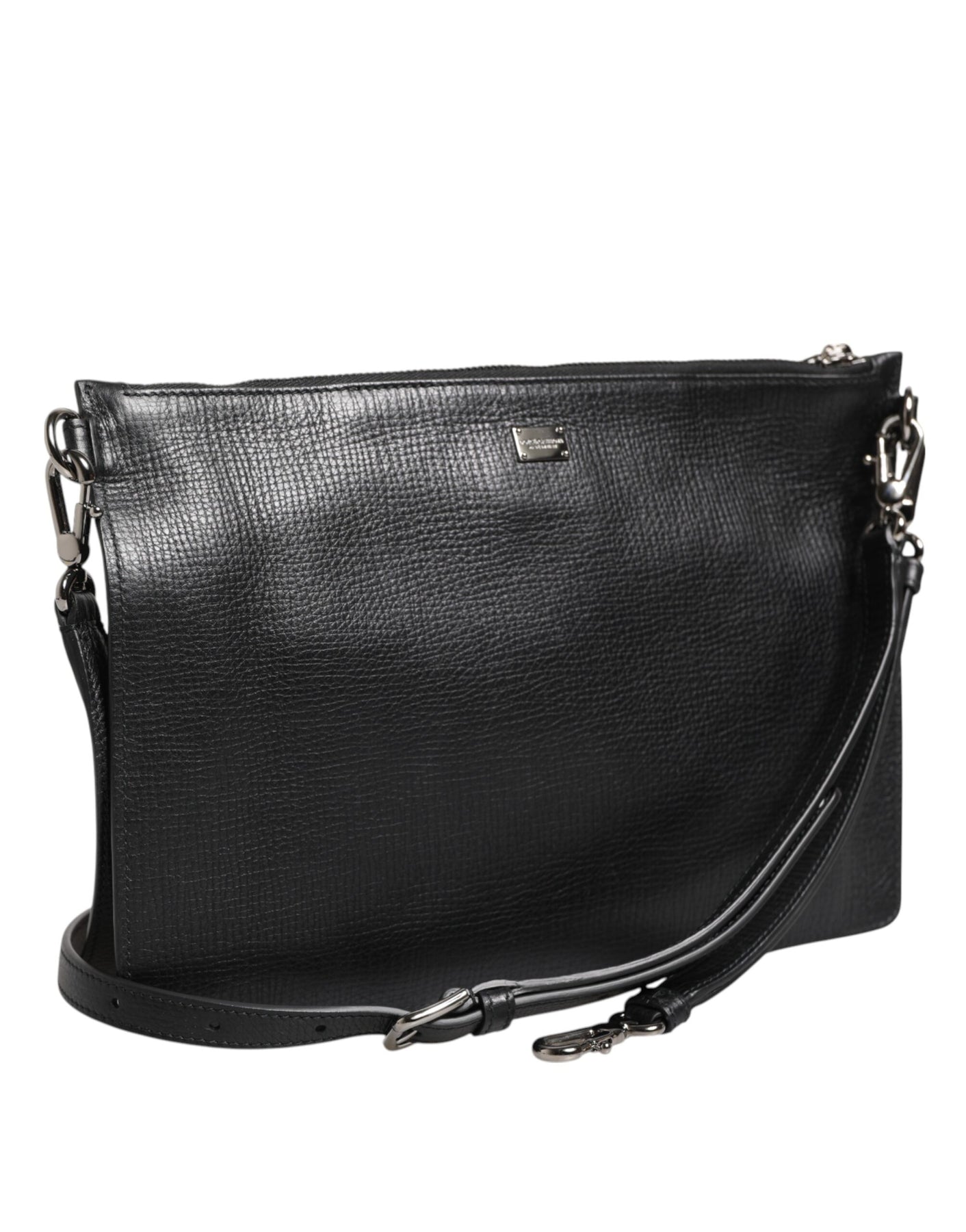 Dolce & Gabbana Black Palmellato Leather Logo Plaque Shoulder Borse Bag