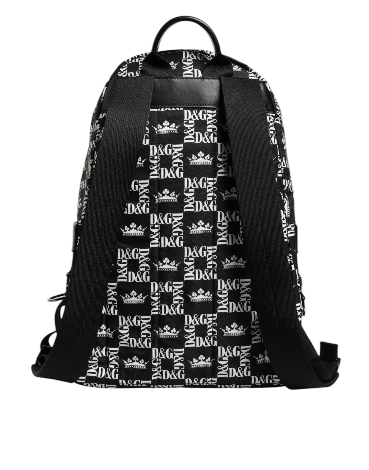Dolce & Gabbana Black White Crown Printed Nylon School Backpack Bag