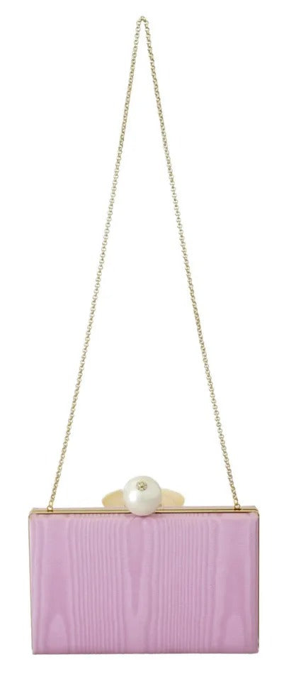 Gorgeous, 100% Authentic Dolce & Gabbana miniature clutch, pink model, covered with dense moire silk. The minaudière is closed with a golden frame lid.