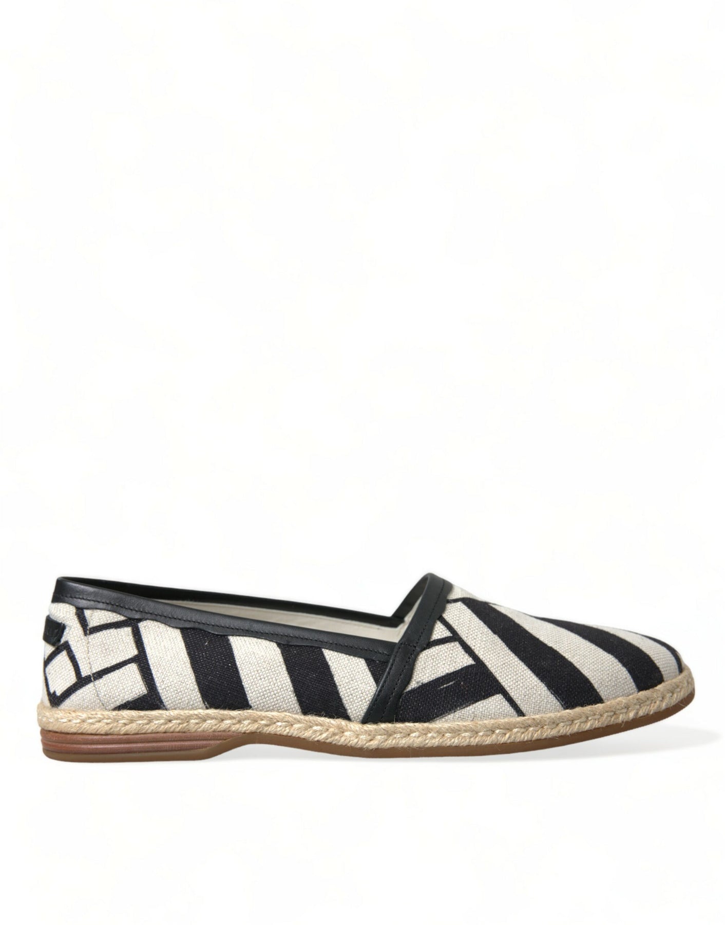 Dolce & Gabbana Beige Black Striped Canvas Espadrilles MONDELLO Shoes