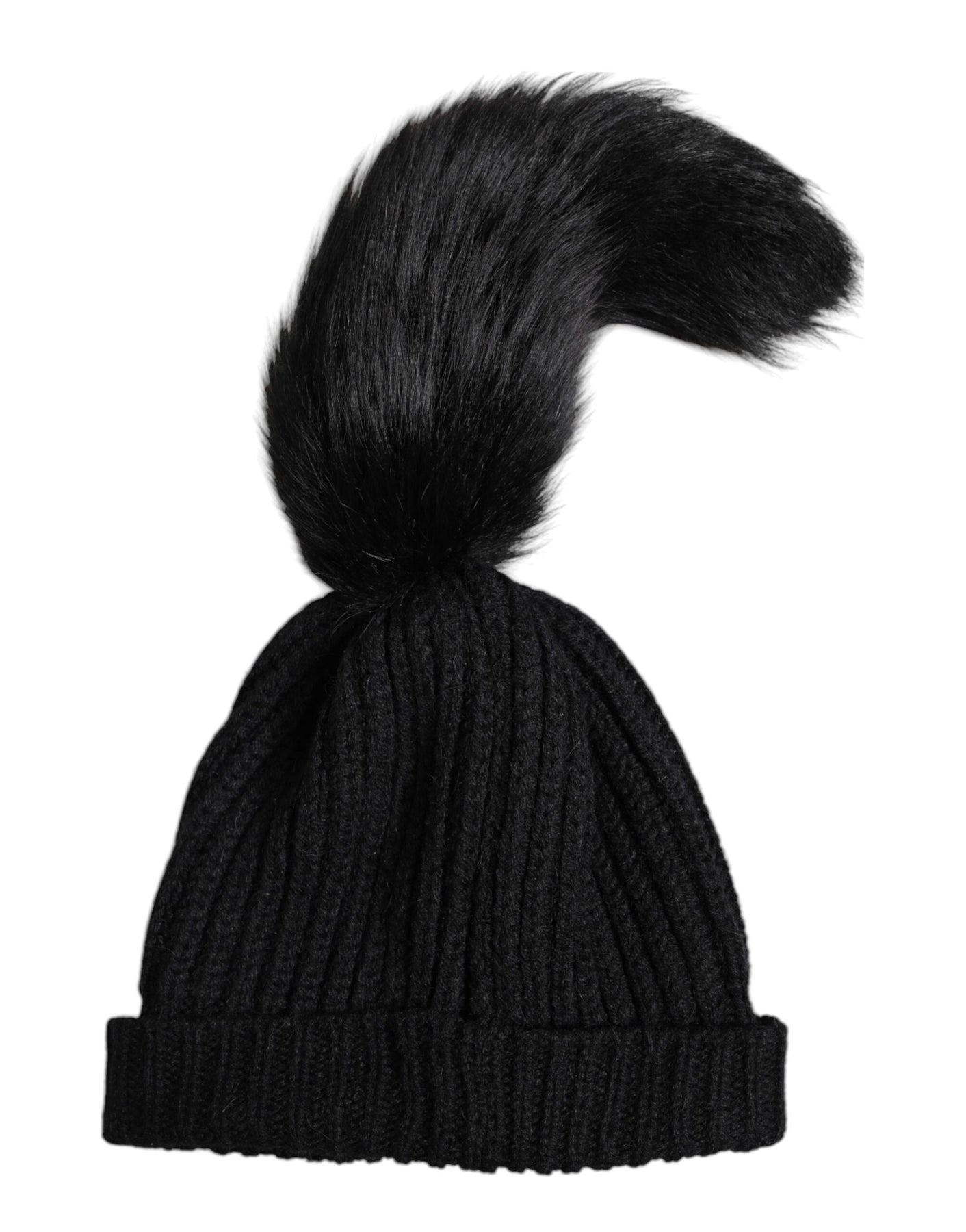 Dolce & Gabbana Black Acrylic Knitted Fur Winter Beanie Hat