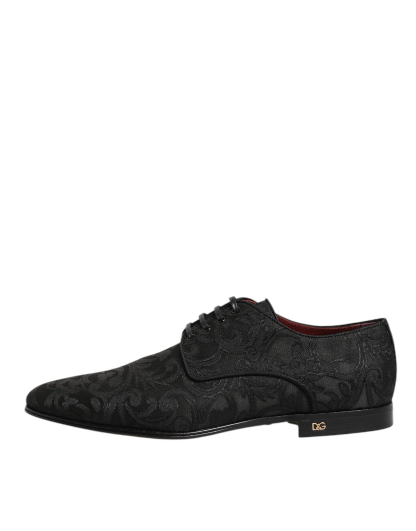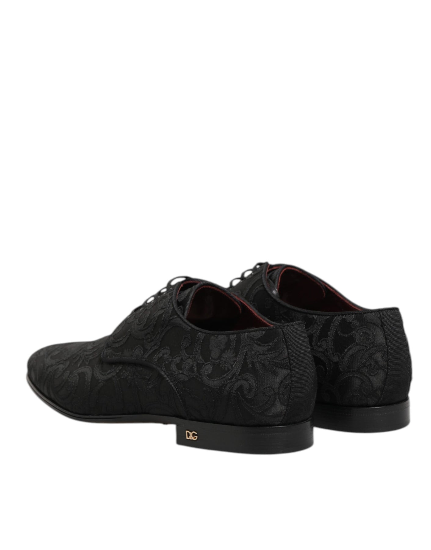 Dolce & Gabbana Black Brocade Lace Up Derby Men Dress Shoes