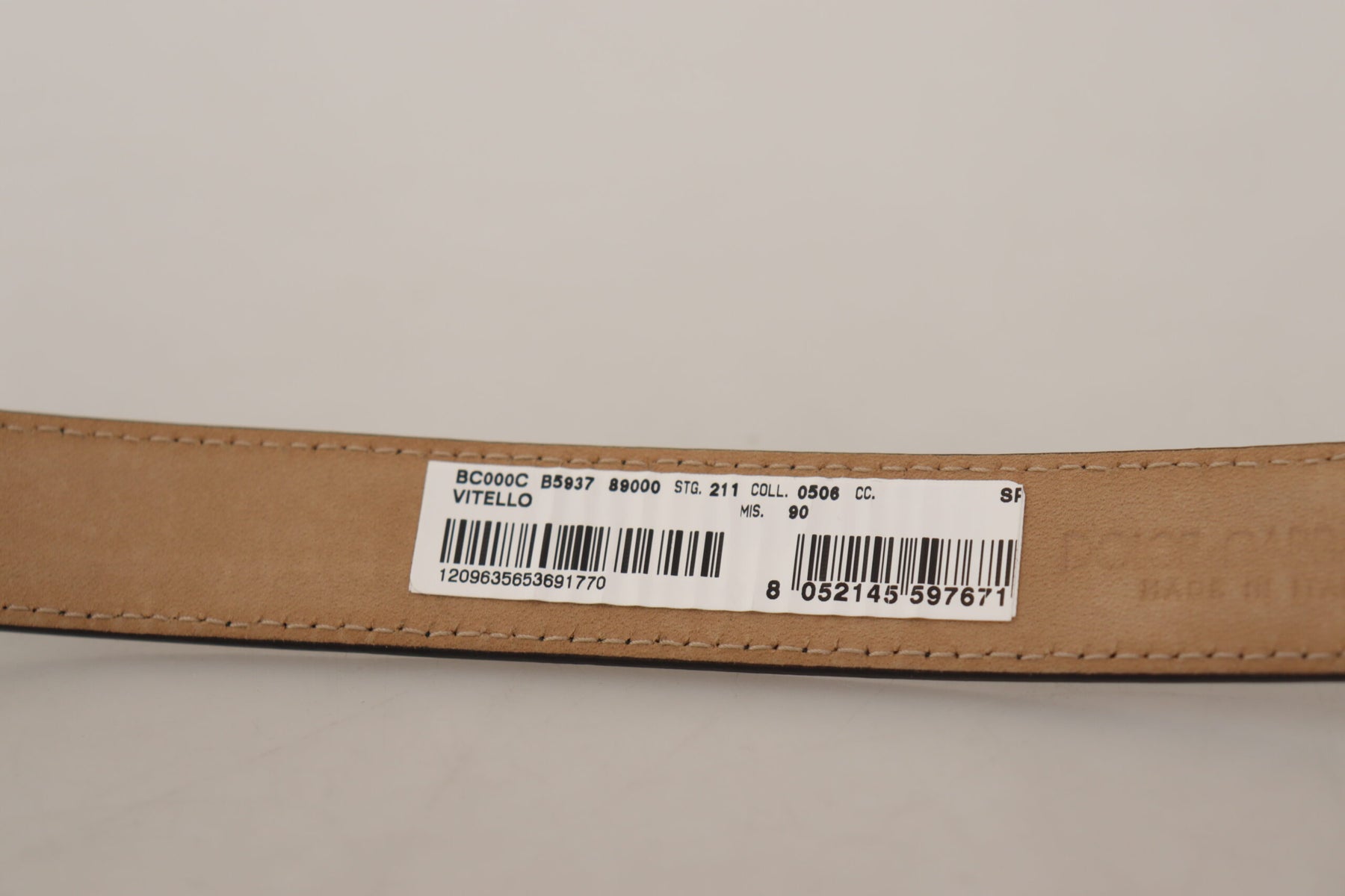 Dolce & Gabbana Black Calf Leather Logo Engraved Metal Buckle Belt