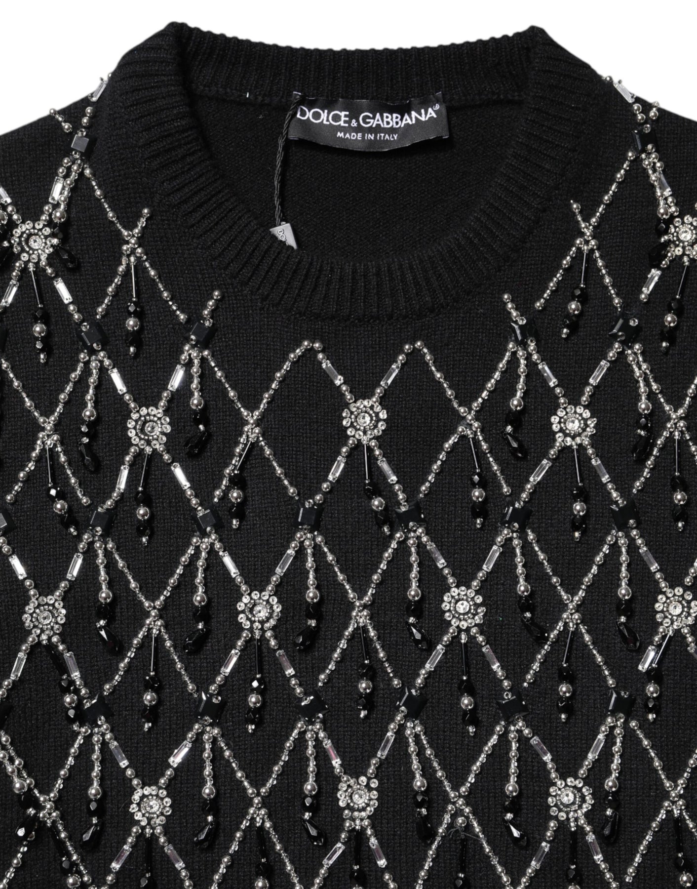 Dolce & Gabbana Black Cashmere Embellished Long Sleeves Top