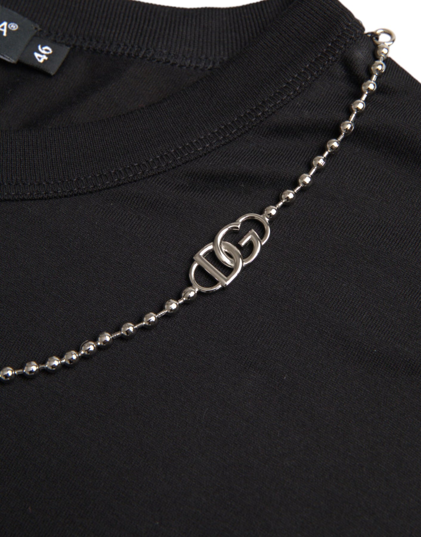 Dolce & Gabbana Black Cotton Silver Chain Short Sleeve T-shirt