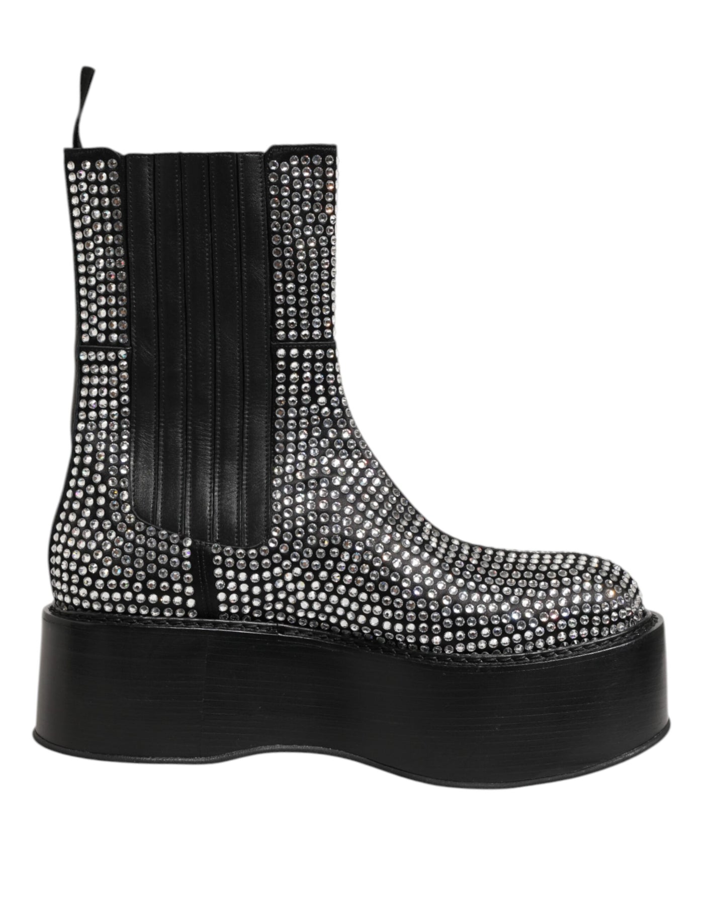 Dolce & Gabbana Black Crystal Strass Mid Calf Short Boots Shoes