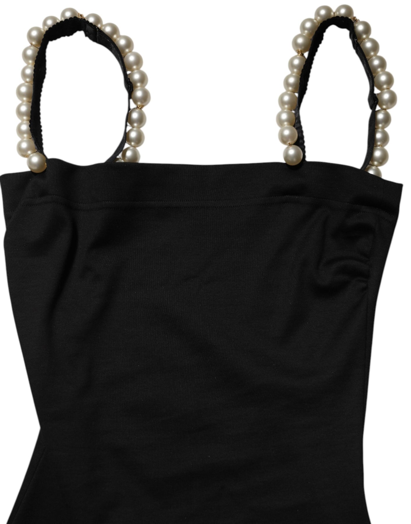 Dolce & Gabbana Black Faux Pearl Cotton Sheath Mini Dress