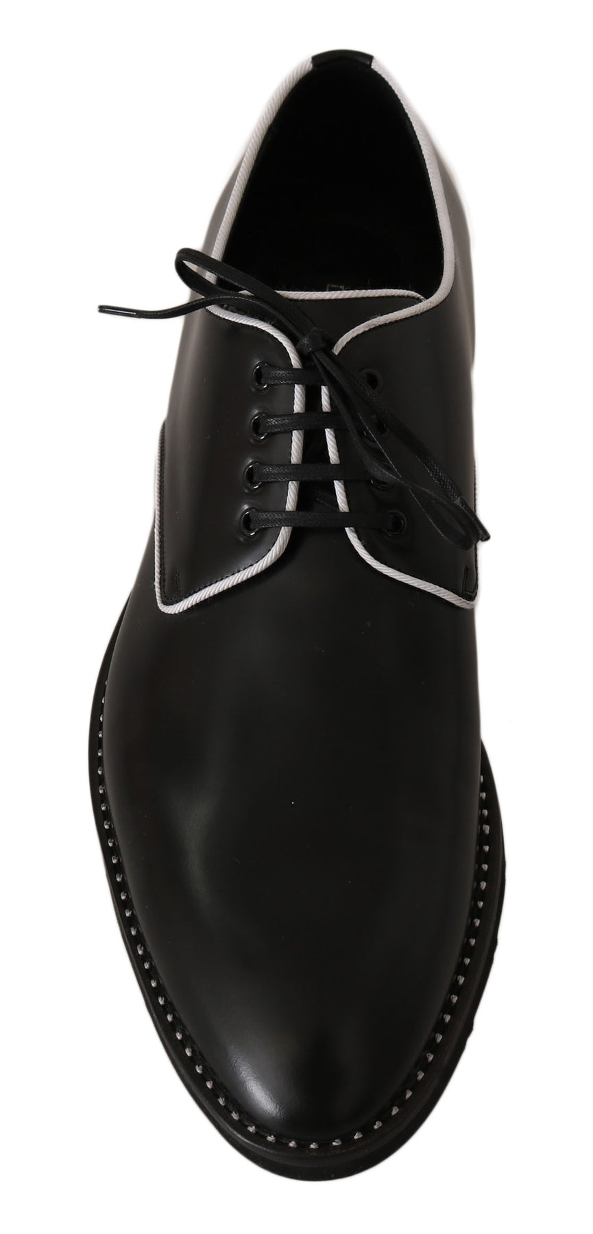 Dolce & Gabbana Black Leather White Line Dress Derby Shoes