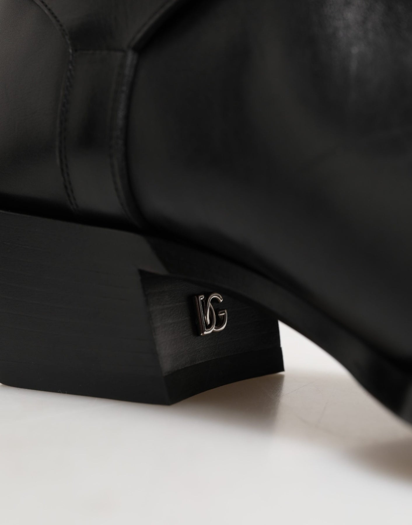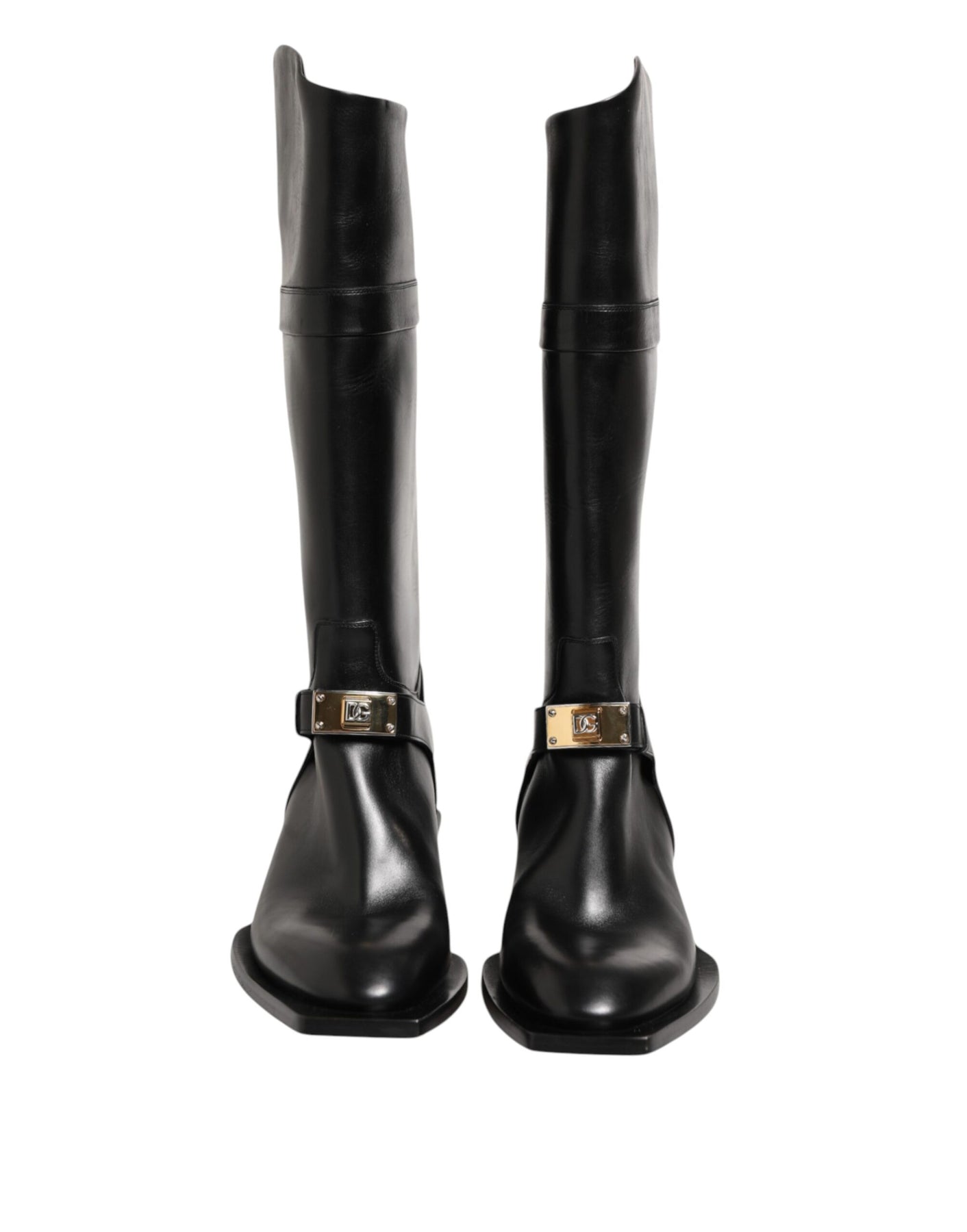 Dolce & Gabbana Black Logo Plaque Over The Calf Boot Shoes