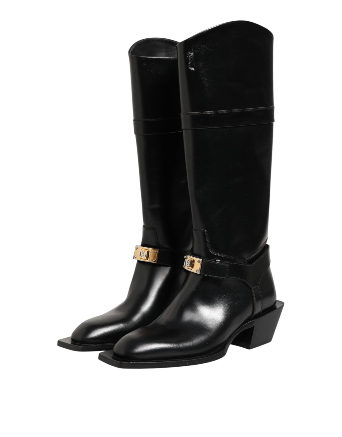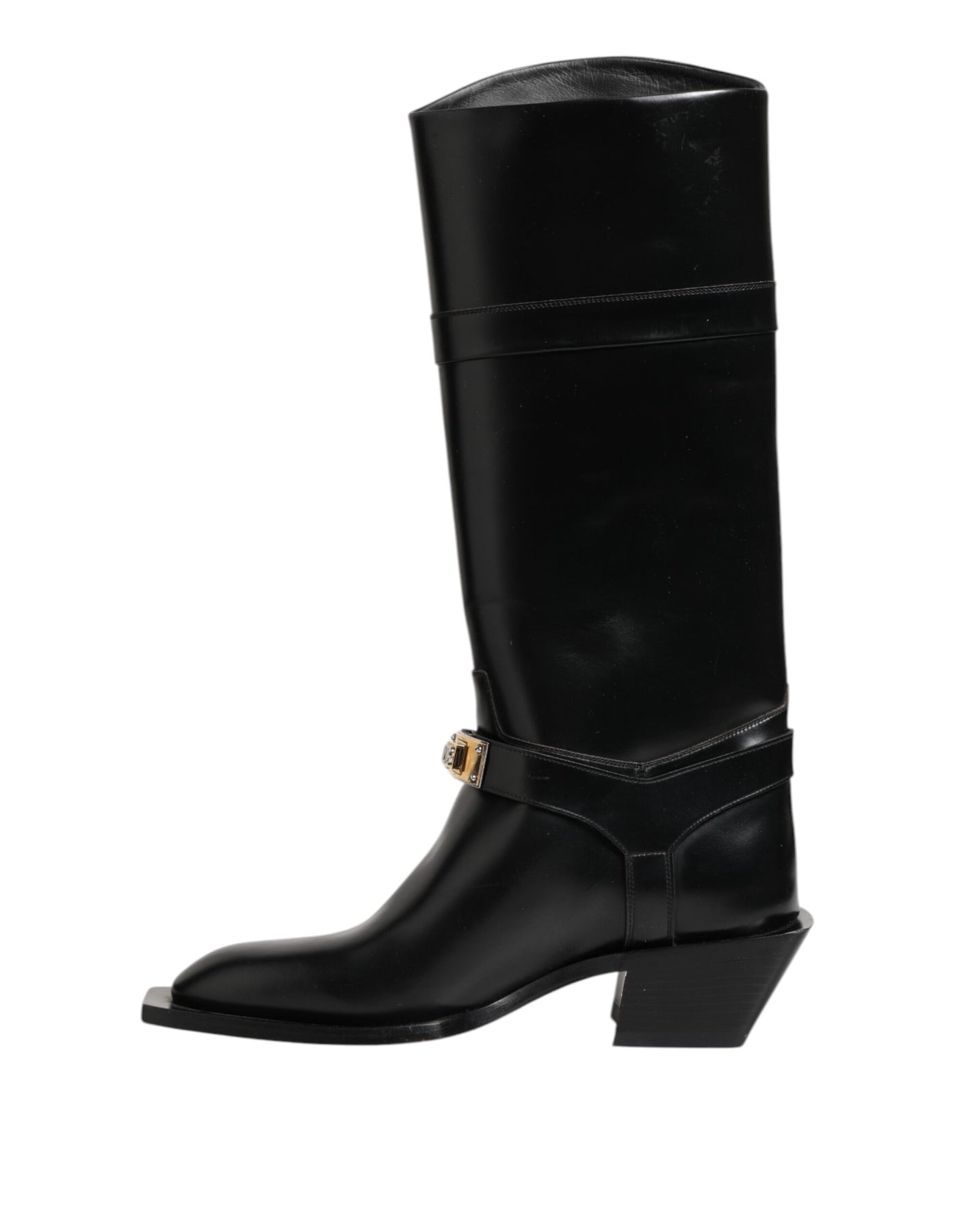 Dolce & Gabbana Black Logo Plaque Over The Calf Boots Shoes