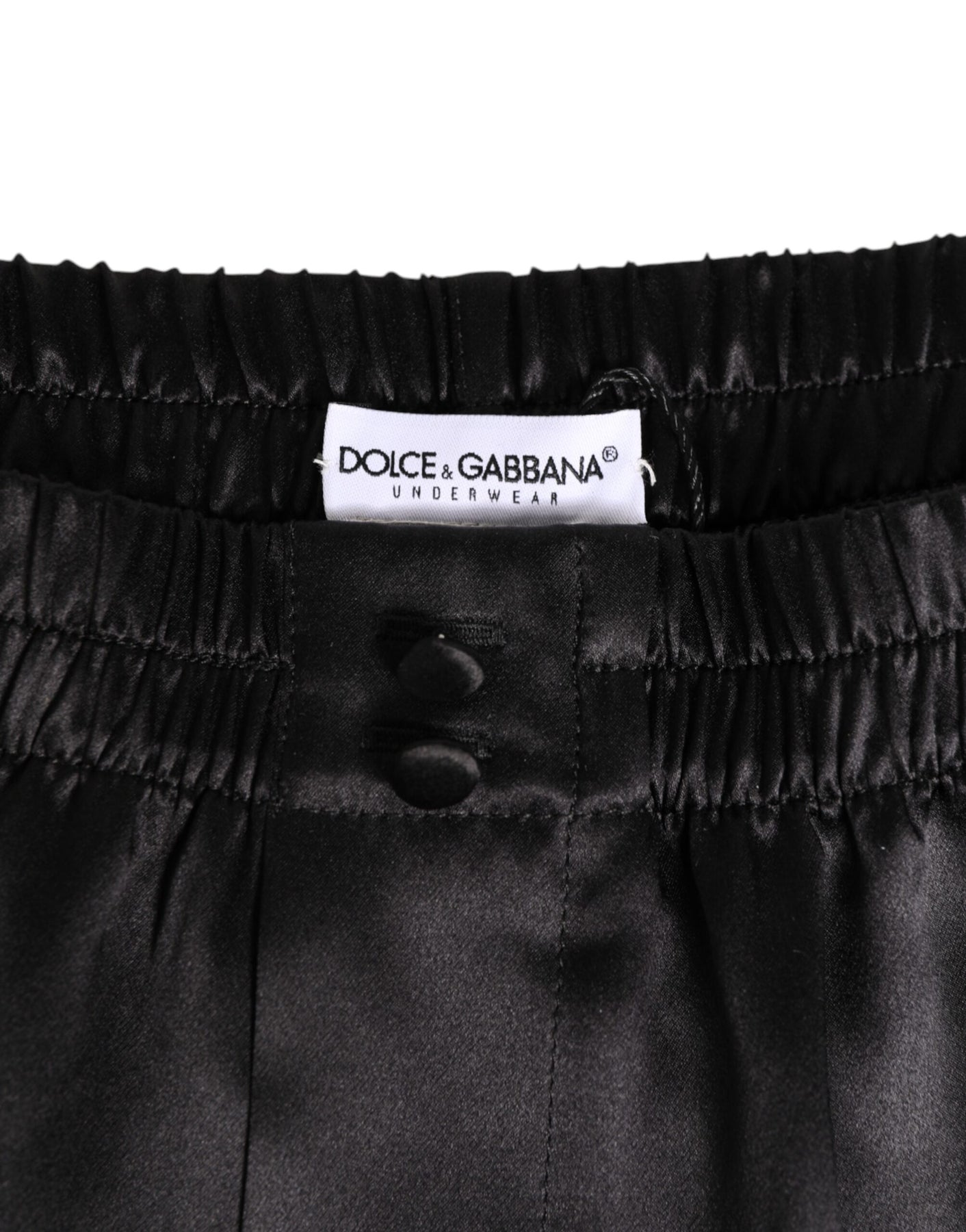 Dolce & Gabbana Black Silk Satin Elastic Men Boxer Short Swimwear
