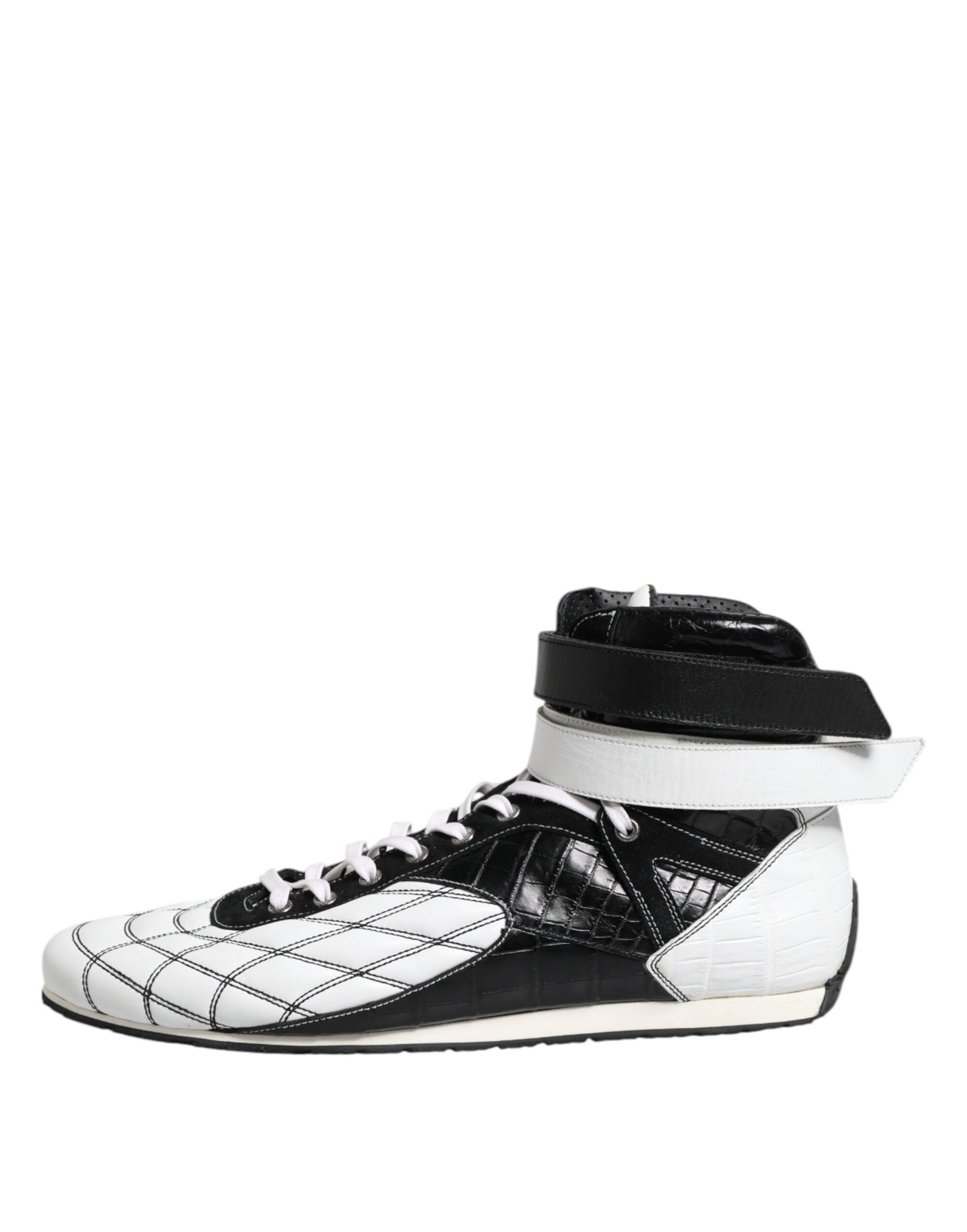 Dolce & Gabbana Black White Leather High Top Sneakers Shoes
