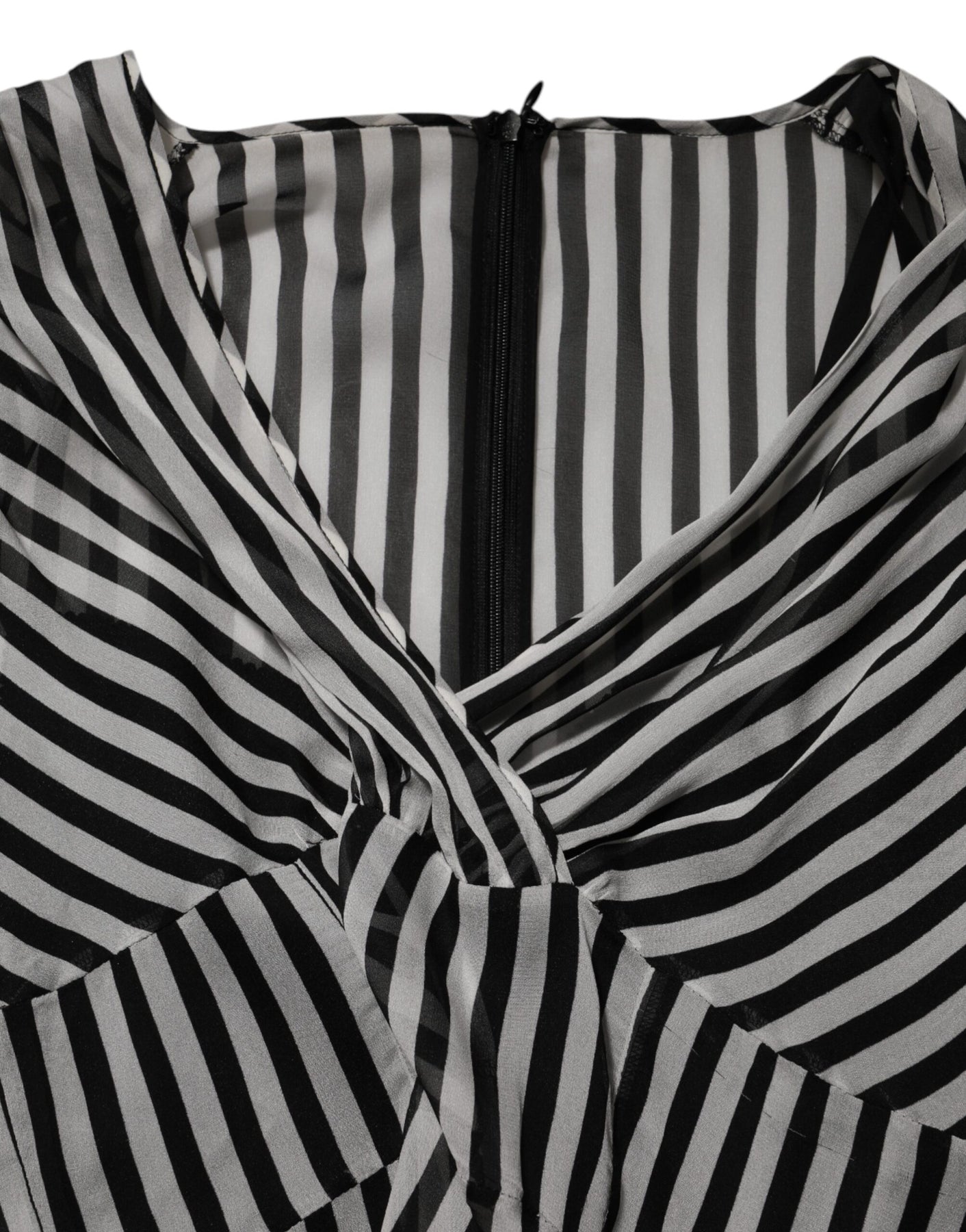 Dolce & Gabbana Black White Stripes Silk V-neck Midi Dress