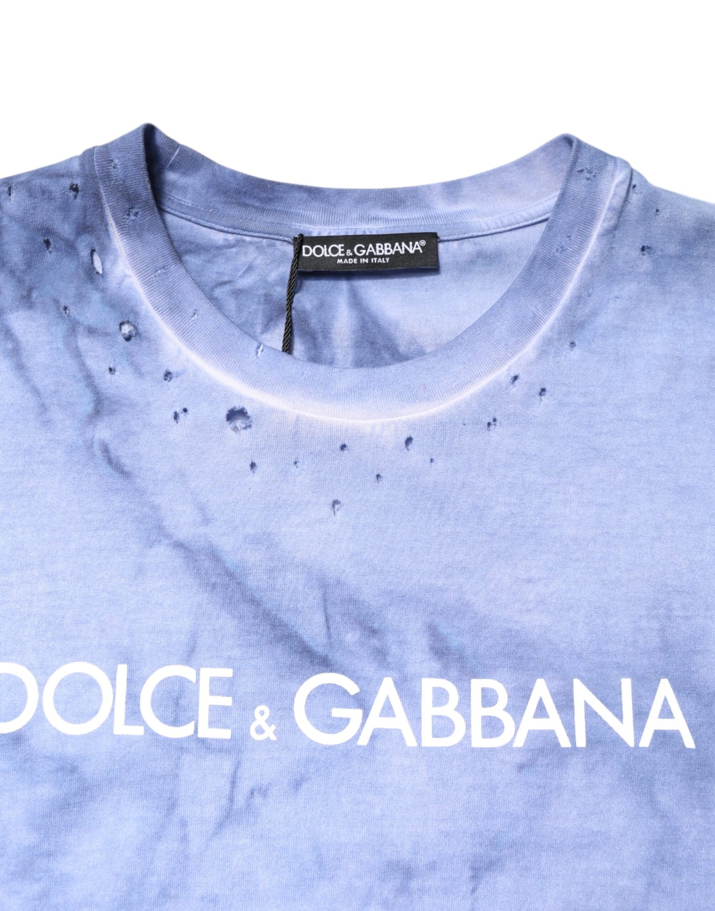 Dolce & Gabbana Blue Cotton Logo Print Crew Neck T-shirt