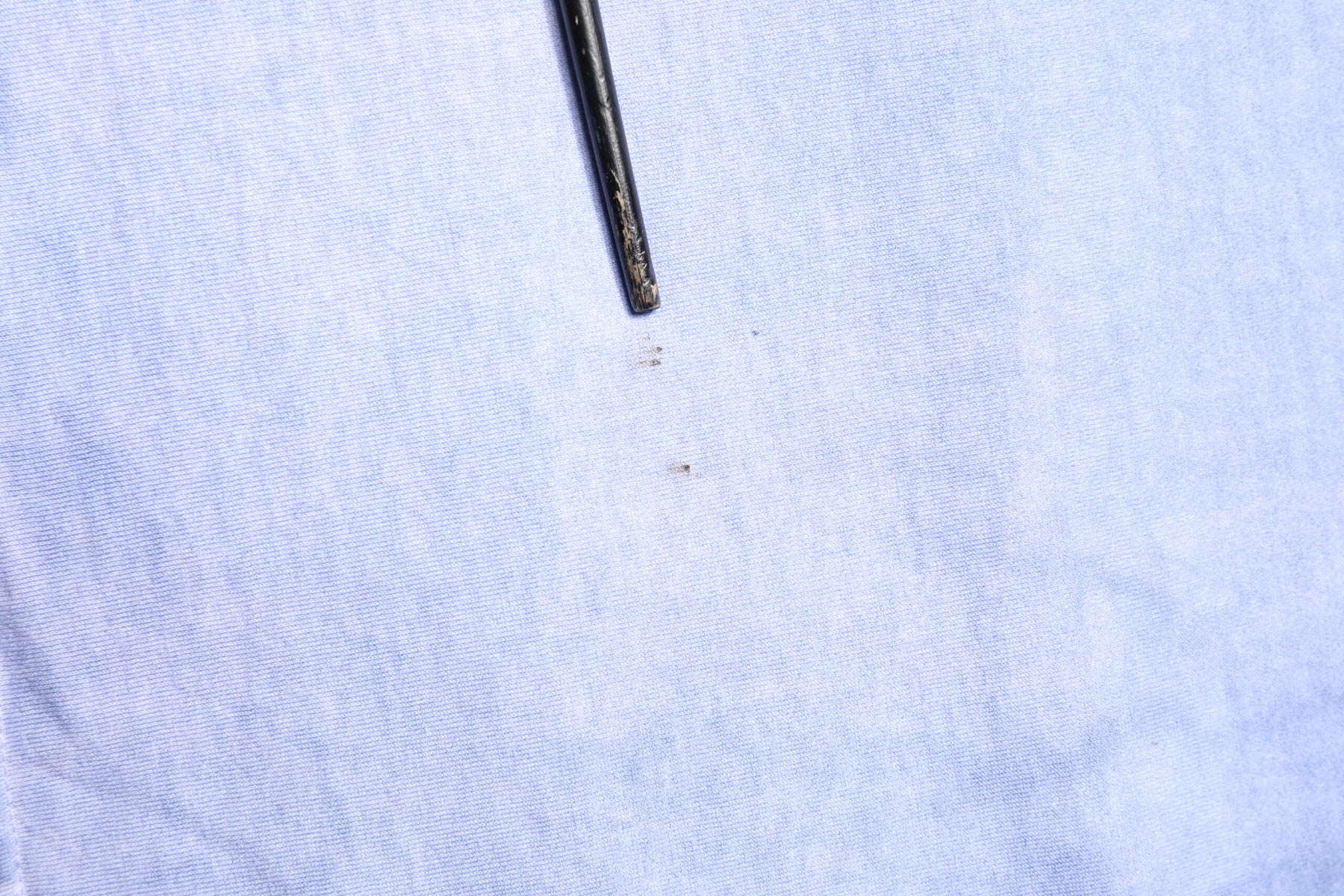 This item has a minor defect, there are stains on the front and back side (see pictures for details).