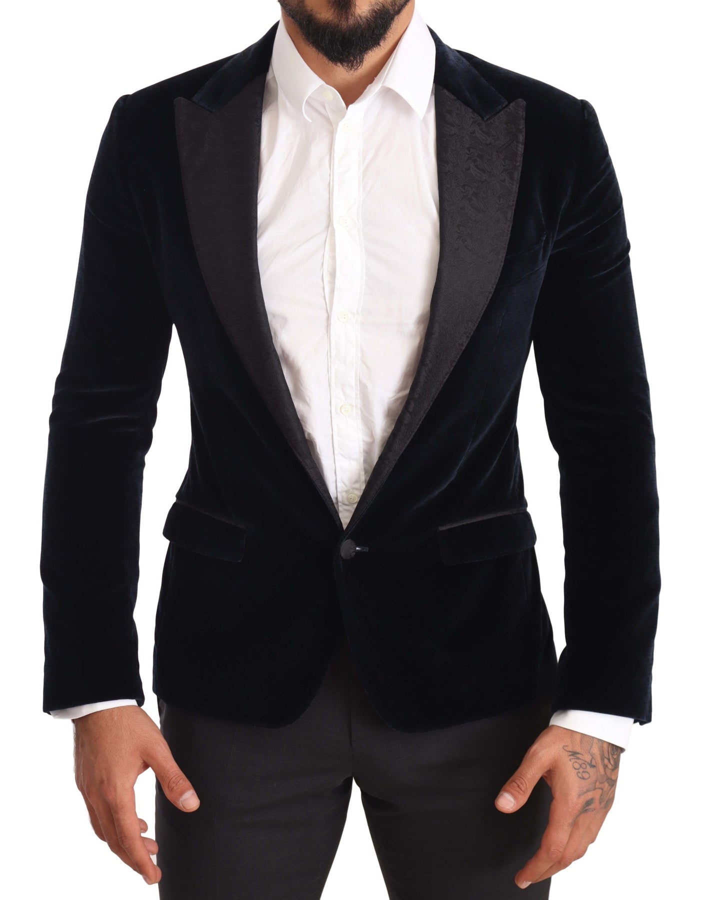 Dolce & Gabbana Blue Velvet Cotton Slim Fit Smoking Suit
