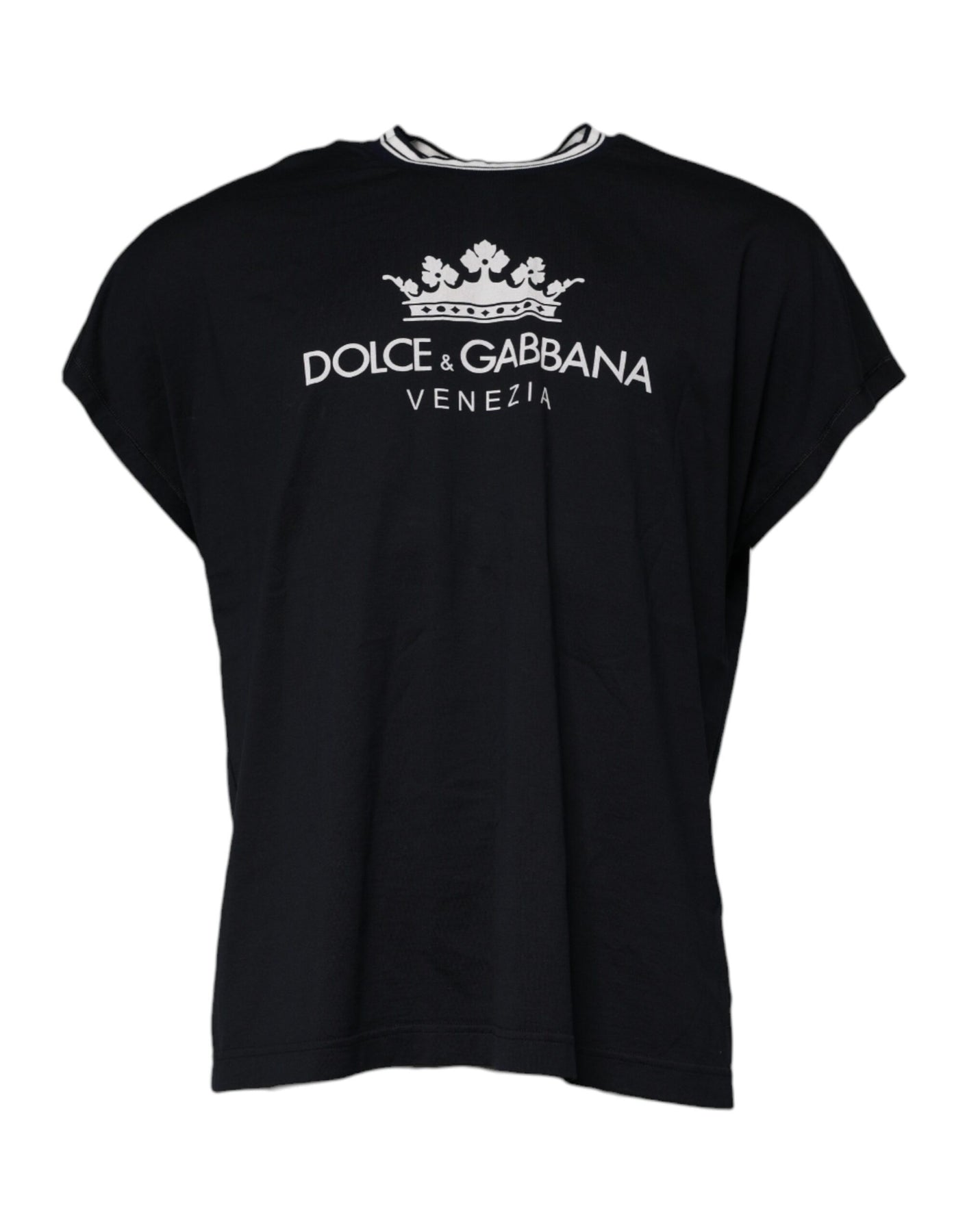 Dolce & Gabbana Dark Blue Logo Crown Cotton Crew Neck T-shirt
