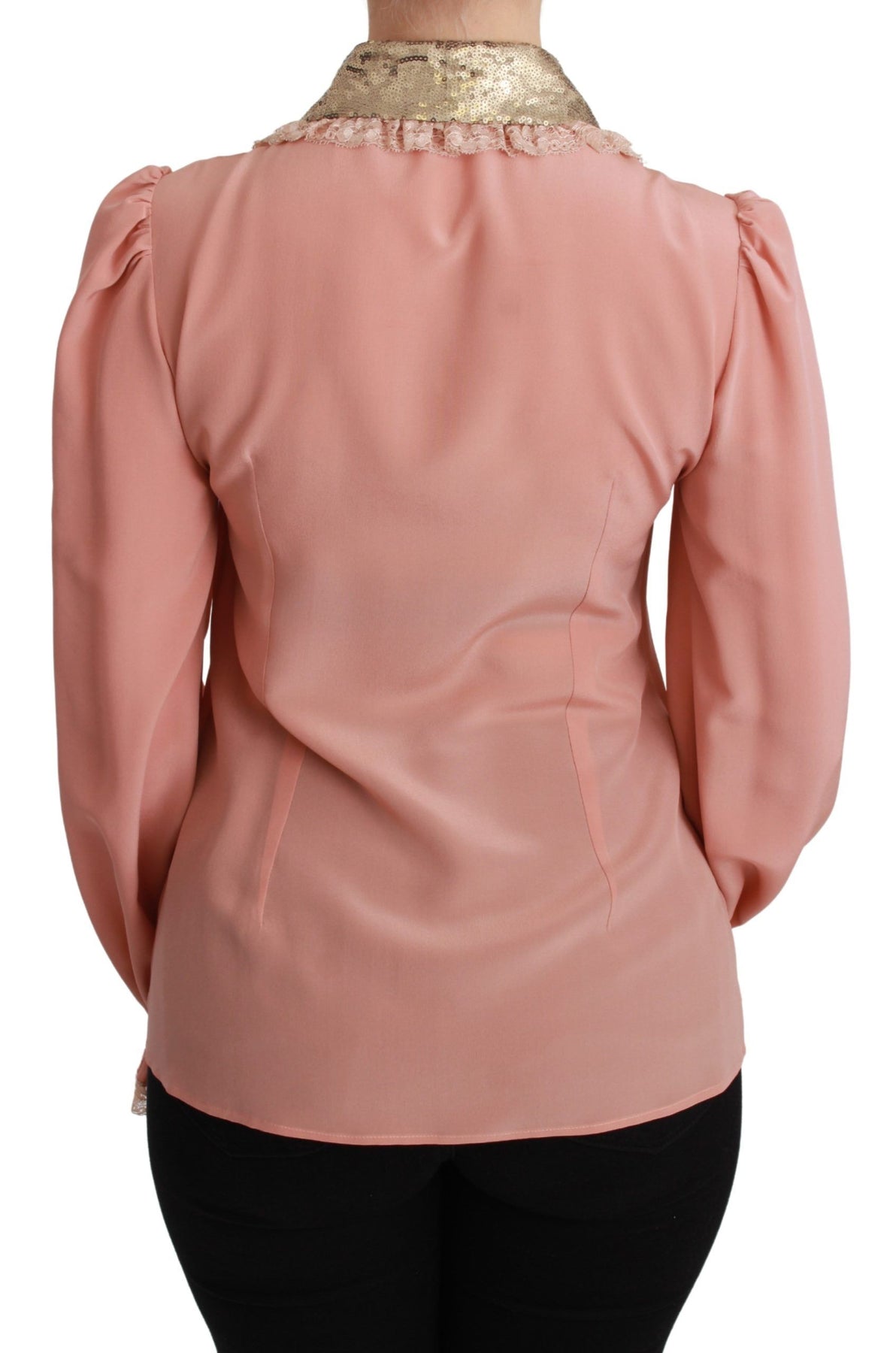 Dolce & Gabbana Pink Silk Gold Sequin Lace Blouse Shirt