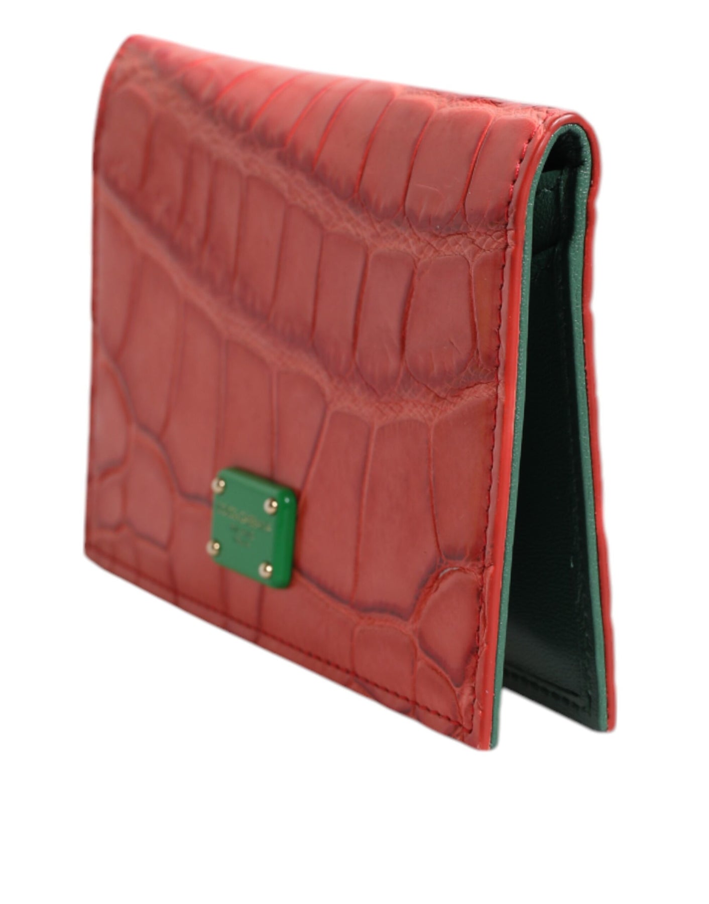 Dolce & Gabbana Red Exotic Leather Logo Plaque Card Holder Wallet