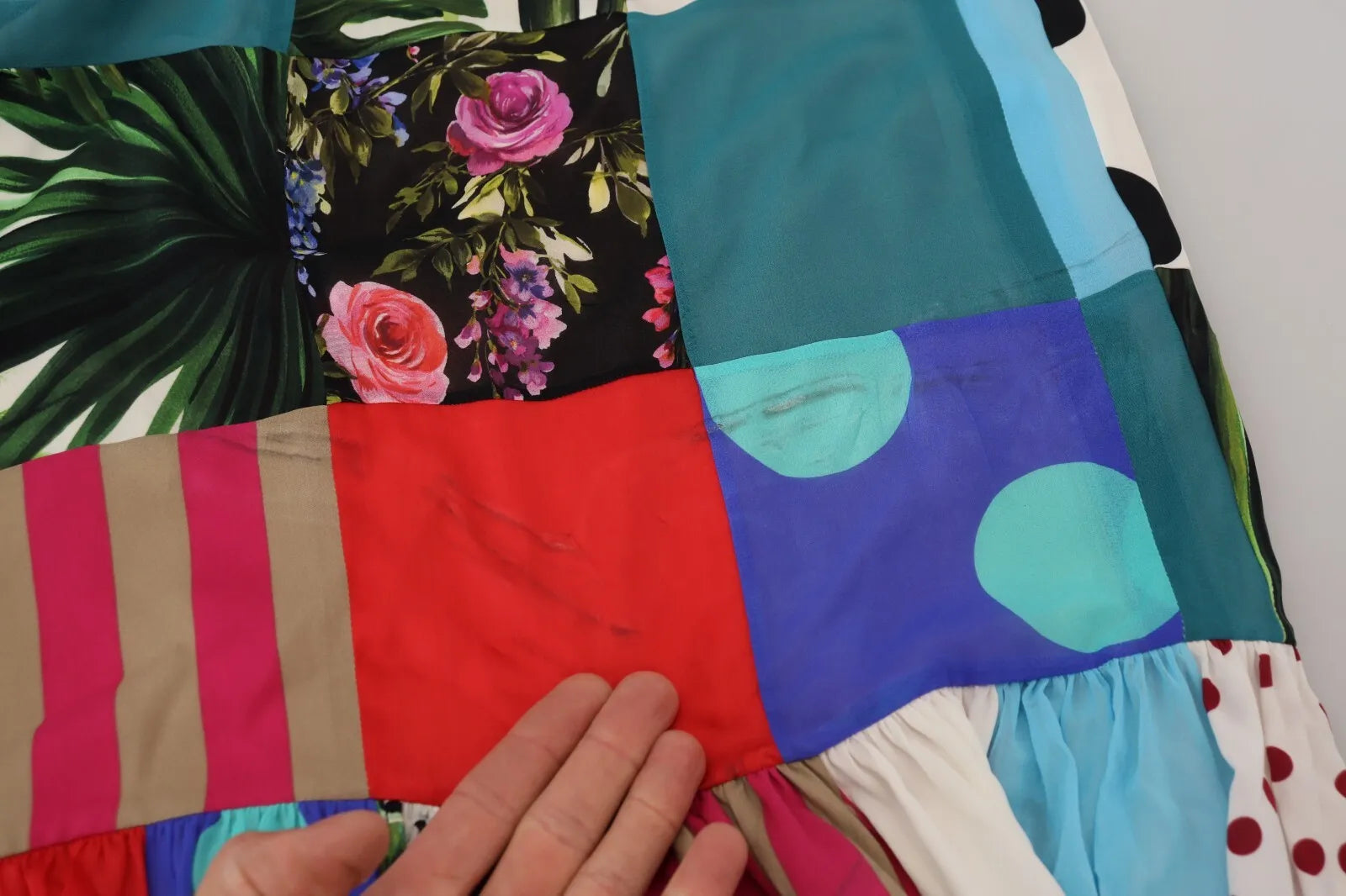 Dolce & Gabbana Silk Multicolor Patchwork Sheath Maxi Dress