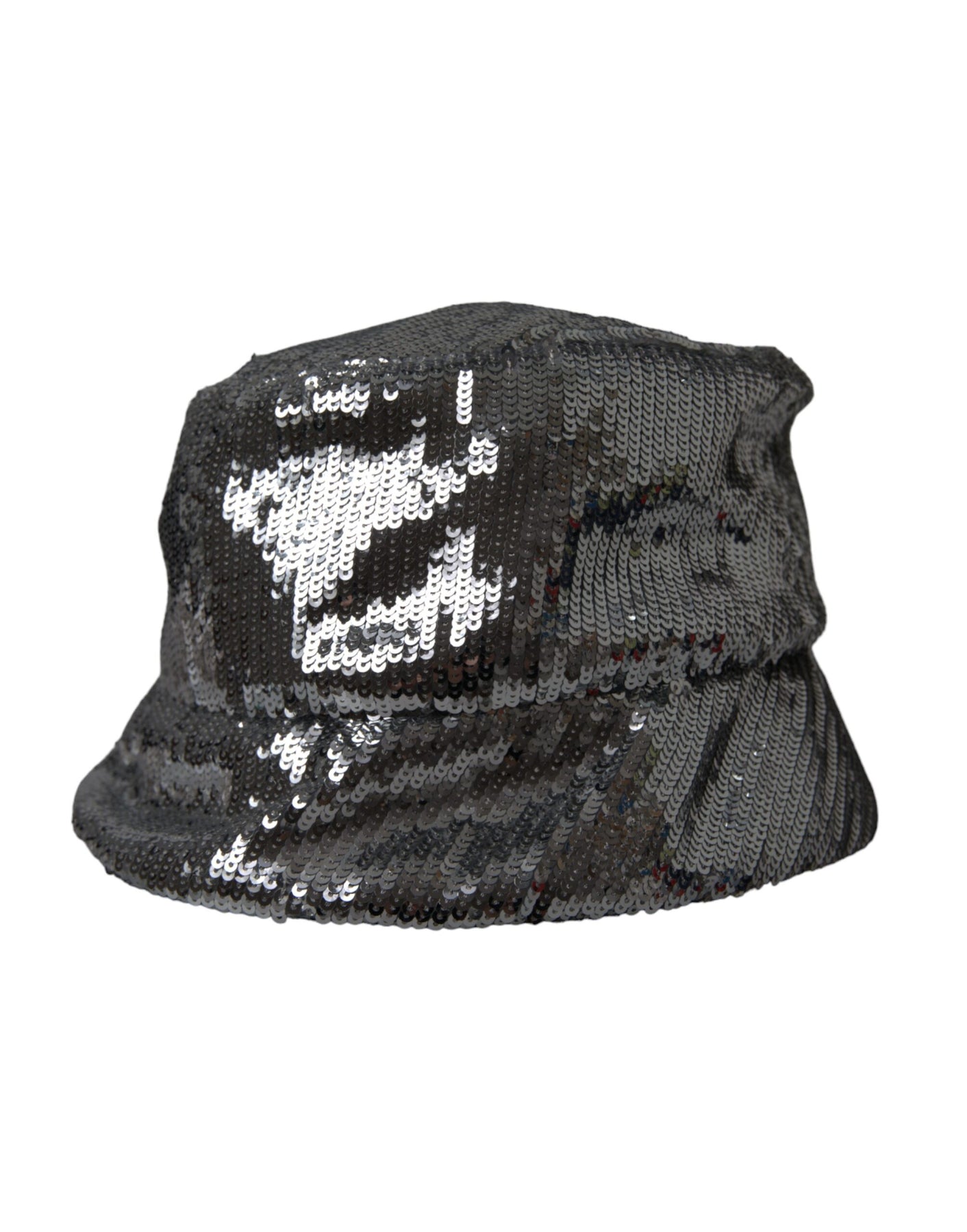 Dolce & Gabbana Silver Sequined Nylon Bucket Hat Men