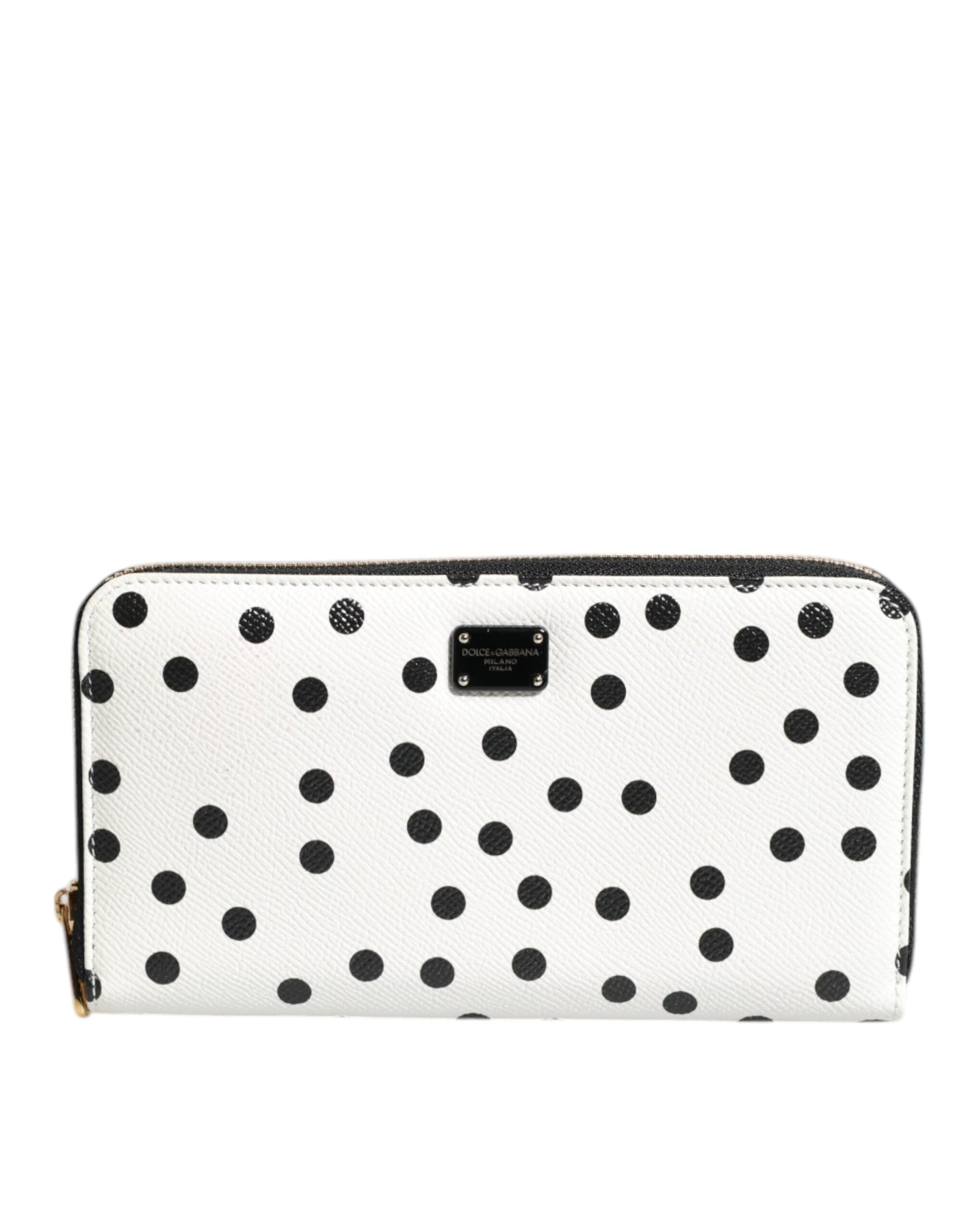 Dolce & Gabbana White Black Striped Leather Zip Around Continental Wallet