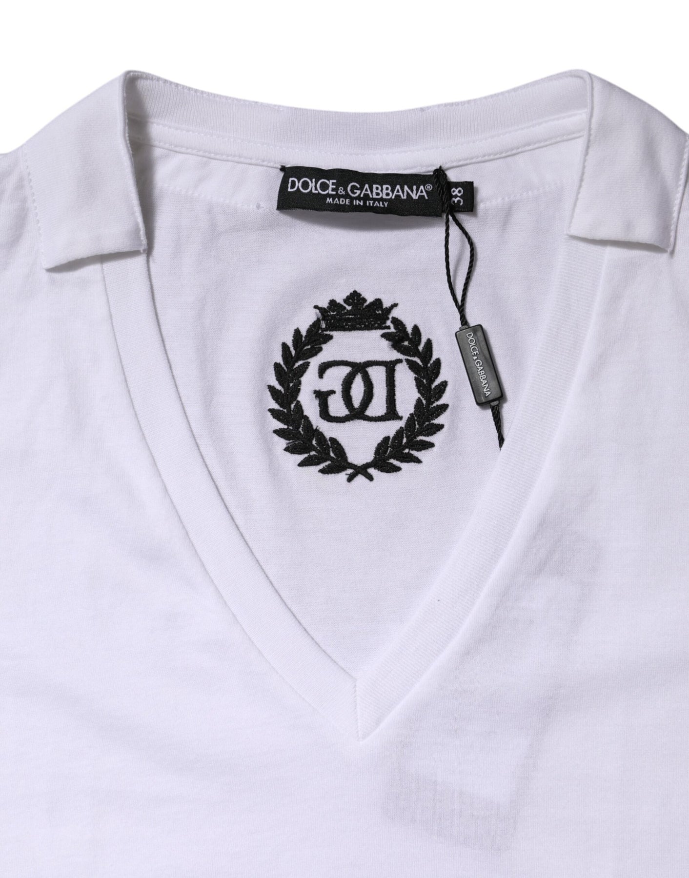 Dolce & Gabbana White Cotton Short Sleeve V-Neck Top T-shirt