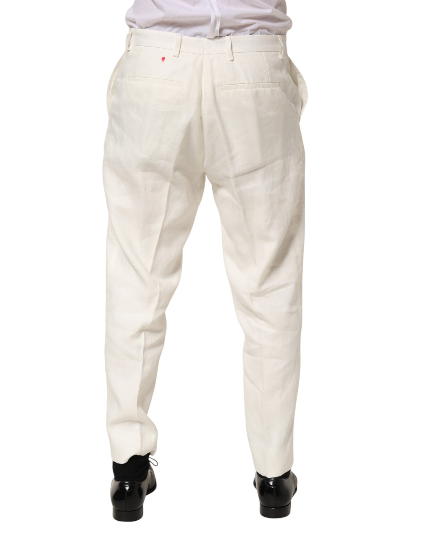 Dolce & Gabbana White Linen Formal Dress Men Trouser Pants