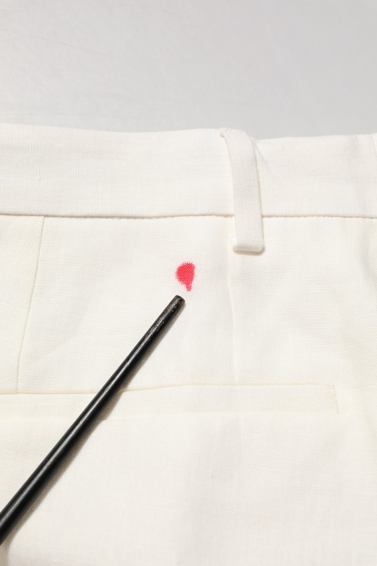 men’s trousers are tailored from lightweight white linen, offering a crisp and breathable fit. Perfect for formal occasions or sophisticated summer looks, they combine classic tailoring with the brand’s signature luxury style.
