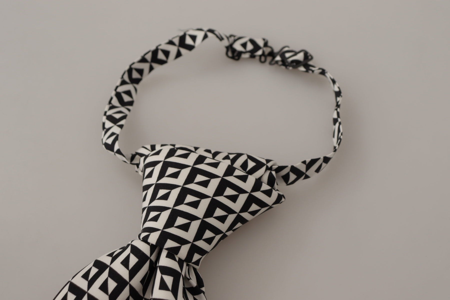 Dolce & Gabbana Black White Geometric 100% Silk Adjustable Accessory Tie