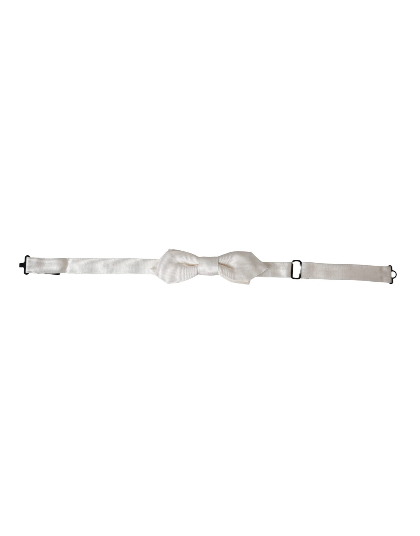 Dolce & Gabbana White Silk Adjustable Neck Men Papillon Bow Tie