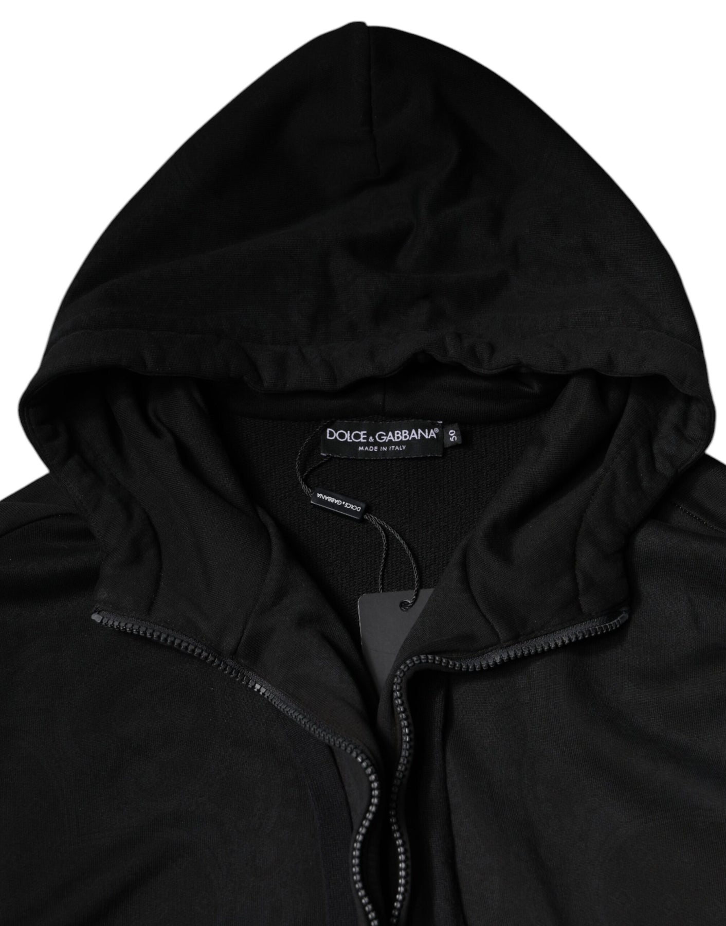 Dolce & Gabbana Black Cotton Full Zip Hooded Bomber Jacket