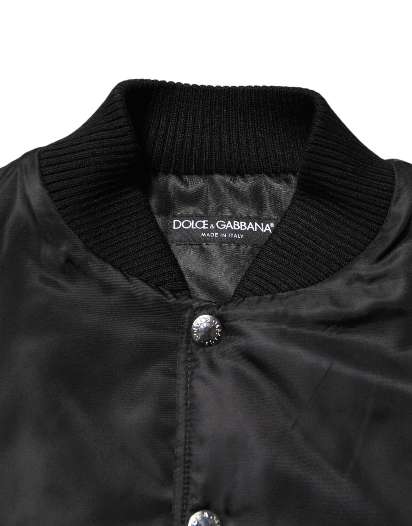 Dolce & Gabbana Black Polyester Logo Plaque Bomber Jacket