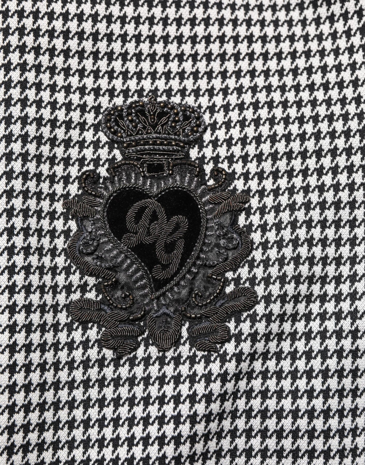 Dolce & Gabbana Black White Houndstooth Wool Crest Jacket Sweater