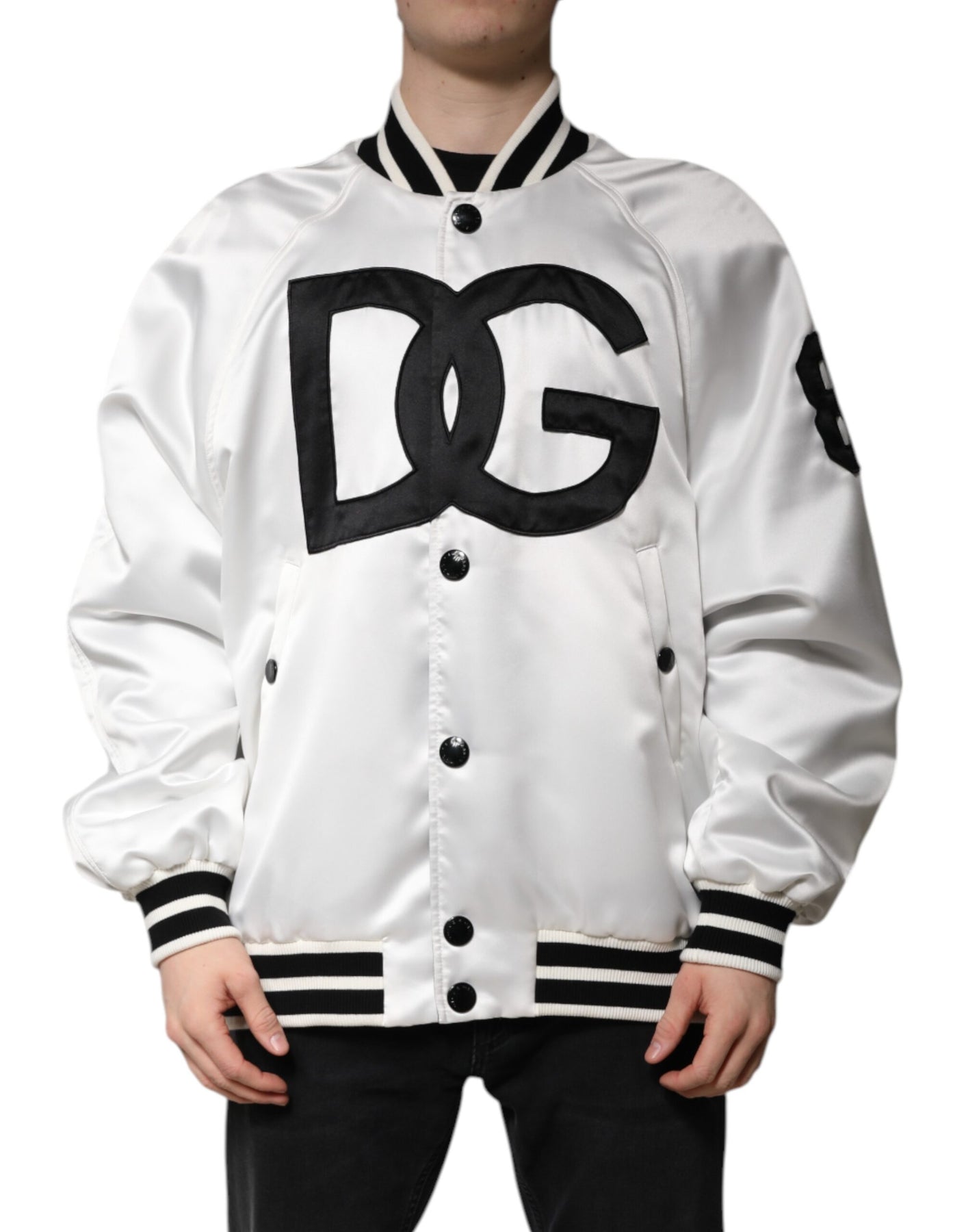Dolce & Gabbana White DG Logo Polyester Jersey Bomber Jacket