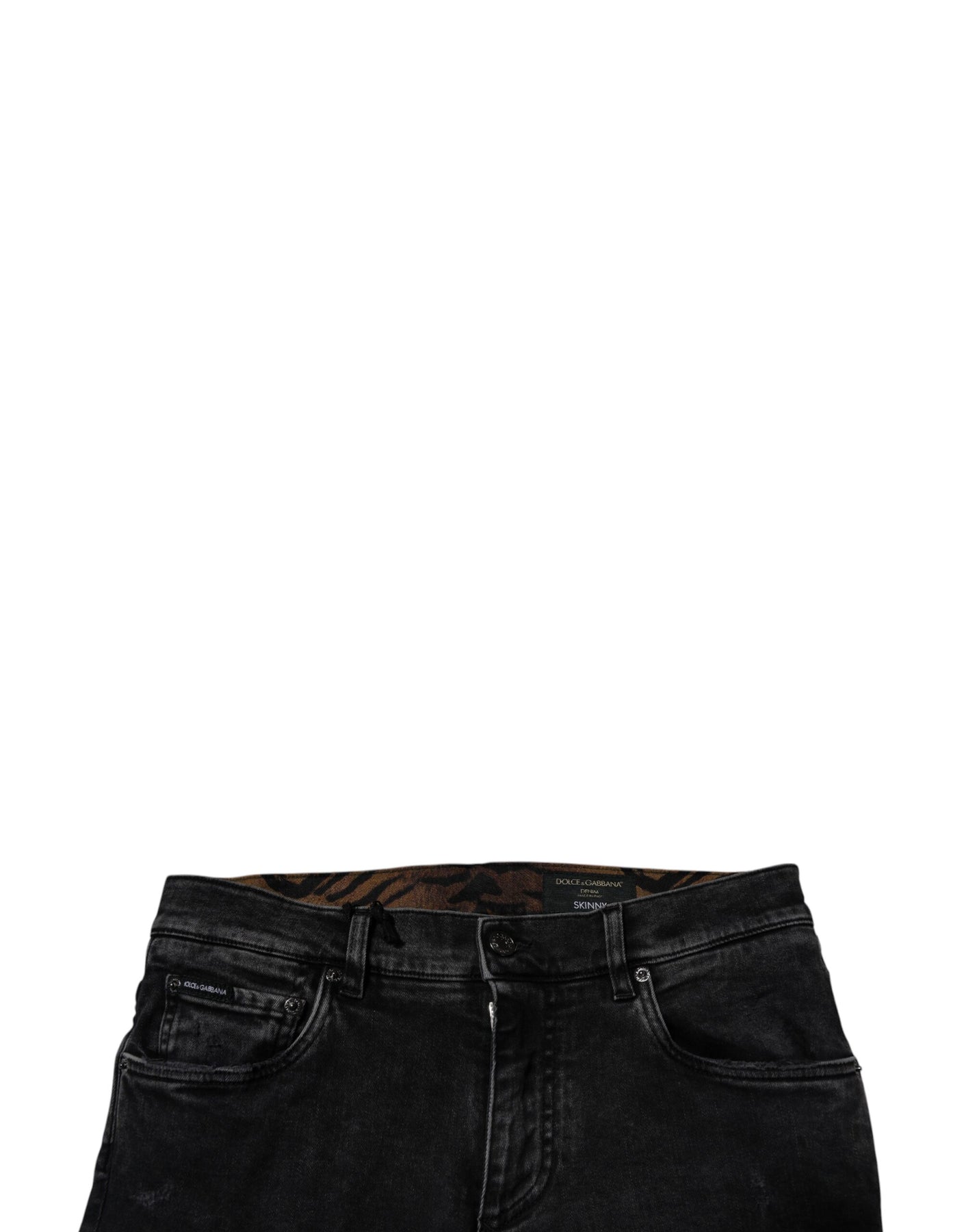 Dolce & Gabbana Black Tattered Cotton Skinny Men Denim Jeans